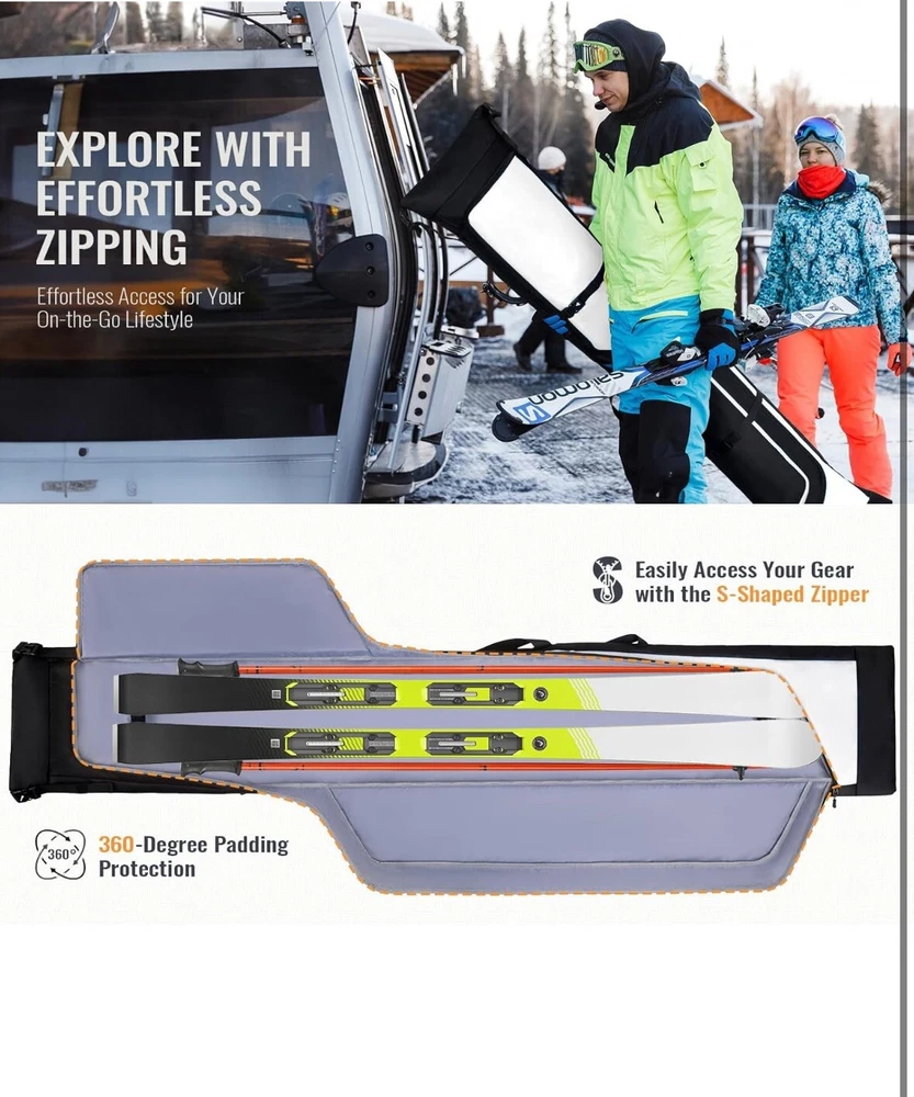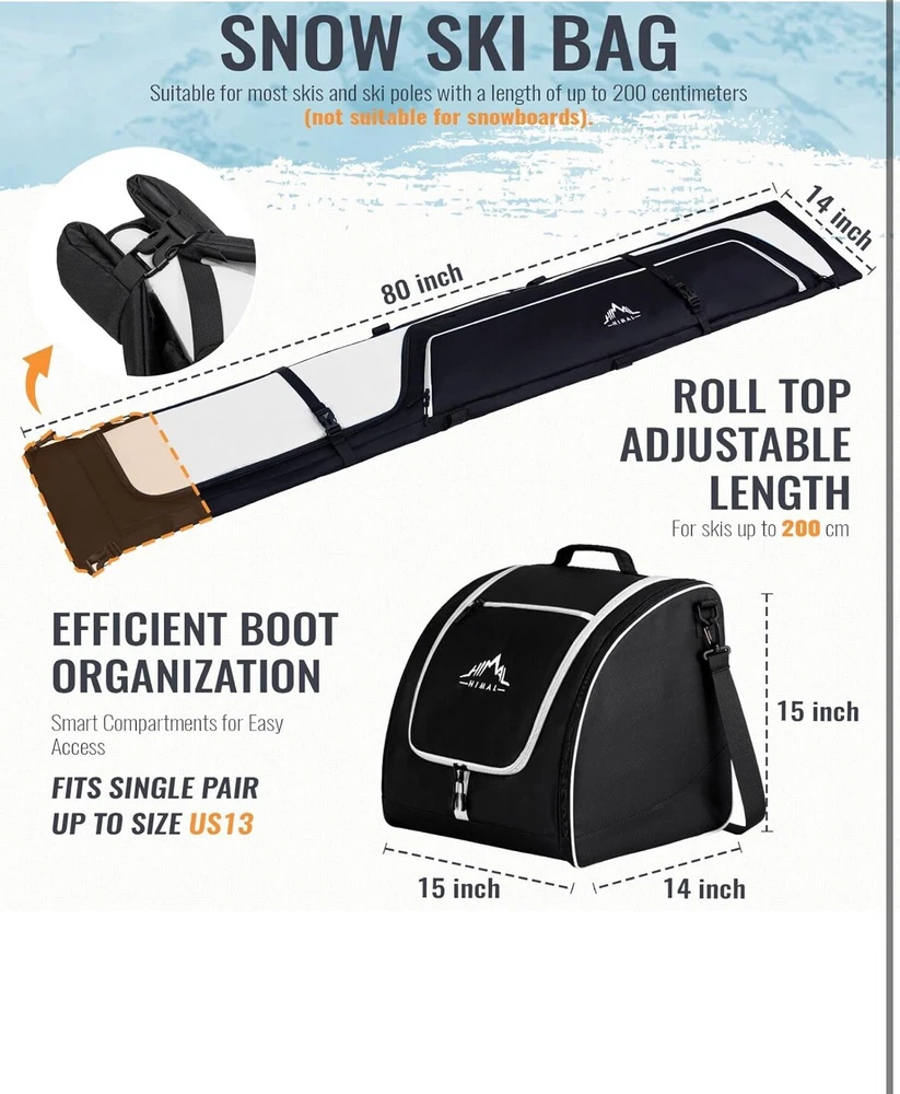 Ski bag and boot bag combo, padded ski bag for air travel,