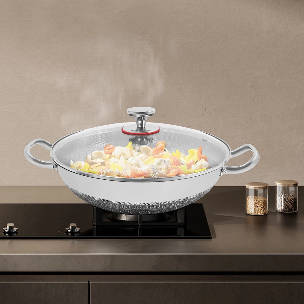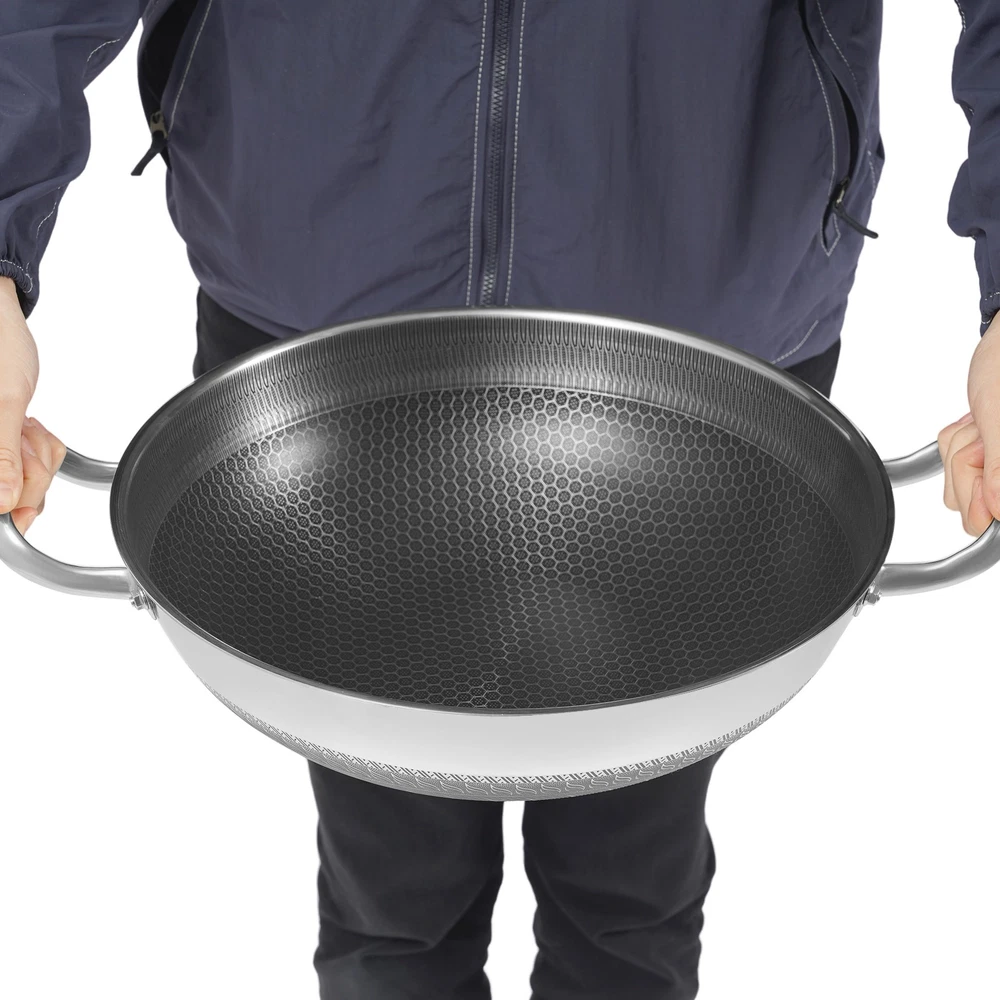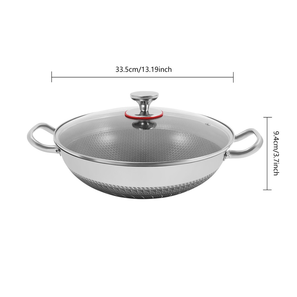 Skillet With Lid Non Stick Paella Pan Stainless Steel Frying/Cooking Pan 14 Inch Description Food is the key to life. Delicious dishes should be paired with the best pot. This stainless steel frying pot is made of 410 stainless steel and is compatible with a variety of stoves. The honeycomb texture inside the wok makes the wok scratch-resistant and durable, and the tempered glass lid lets you see the dish's situation. Its single-layer bottom and unique texture design allow this product to transfer heat evenly and quickly, making cooking more efficient with less oil and making your food more delicious and healthier. Application It can be used for frying, sauteing, deep-frying, and other kinds of cooking. It is suitable for open-flame heating and most stoves such as gas stoves, induction cookers, electric ceramic stoves, electric stoves, and halogen stoves. Specifications Color: Silver Style: Modern Material: 410 Stainless Steel, Tempered Glass Process: Integrated Die-casting Molding, Etching Assembly Required: Yes Is Dishwasher Safe: No Applicable People: About 3-4 Product Size(D*H): 33.5*9.4cm/13.19*3.7in Packaging Size: 35*35*14cm/13.78*13.78*5.51in Gross Weight: 2.28kg/5.03 lbs Net Weight: 2.17kg/4.78 lbs Key Features Quality and Healthy Material: The 410 stainless steel with integrated die-casting molding, and etching processes makes this product heat-resistant, corrosion-resistant, scratch-resistant, safe, and healthy, ensuring a long service life. Fast Heating: The single-layer bottom and the unique texture make it more energy-gathering, which improves the heat-conducting efficiency of the cookware and shortens the cooking time so that the delicious flavors can reach your stomach faster. Suitable Capacity: The 13.19" opening diameter and 3.7" depth allow you to flip food around freely and ensure enough capacity for about 3-4 people, fully meeting your daily cooking needs for your family. Thoughtful Design: The rivetless inner pan and honeycomb texture make it beautiful and unique, and the non-stick surface allows for easy frying of food without sticking to the bottom of the pot, minimizing the use of oil. The tempered glass lid can prevent insects and dust and make cooking clear. For food lovers, it is a delightful process to observe the changes in the dish at all times. Easy to Clean: The etching process ensures a clear texture, and the honeycomb surface reduces the contact area between the spatula and the bottom of the pan, achieving a non-stick effect, and making it easy to clean with water. Compact and Lightweight: With a lightweight of 4.78 lbs and compact size, you can easily operate it, showcasing the style of a chef. Ideal Gift: It is both beautiful and practical, making it a great housewarming gift for friends, family, and colleagues. Protective Package: To prevent the product from being damaged and bumped during transportation, we packed it with bubble bags to protect your products to the maximum extent possible. Customer Service: We aim to provide quality products and services. If you have any problems, please feel free to contact us. We will reply and solve the problem for you as soon as possible. Details Practical Handles: Handles on both sides make lifting easy. The handle on the lid makes it easy for you to move the lid. Vapor Hole: The small hole on the cover is designed to release the pressure to enhance safety during use. Package Included 1* Stainless Steel Frying Pot 2* Handles 1* Lid All Accessories for Assembly Notes Please check the size carefully before ordering. Please hang or store the cookware in a dry place. In case of scalding, please wear a pair of anti-scald gloves or use cloth before touching the long-time-used frying pot. Please note that this product is not recommended to be washed in a dishwasher. Please allow the slight color difference caused by the shooting light and 1-3cm error due to manual measurement, and make sure you do not mind before you order. Payment Delivery details Terms of sales About us Contact us Payment We accept ebay payment 。 Fees such as import duties, taxes are not included in the item price or shipping costs. These charges are the buyer's responsibility. Delivery details Shipping: 2-9 working days to: USA Terms of sales We maintain high standards of excellence and strive for hundred percent customer satisfaction. Feedback is very important to us. We hope that you contact us immediately before you give neutral or negative feedback, so that we can address your concerns. It is impossible to address issues if we do not know about them! About us Your satis faction is our ultimate goal. We work hard to earn your trust and future business. Our certified technicians have tested each item before shipping. The unit comes with 1 year limited warranty on all manufacturing defects. a) If you receive a defective item, you may return it or ask for a discount. Please contact us within 14 days after you receive the package. b) What you returned must be intact and in its original packaging as re? u. Customer is responsible for shipping costs of the returned item. c) We will cover the cost of shipping back t with the shipping rate indicated in the registration page. We will send you a new unit or refund the full payment you paid. Thank you. Contact us Business Hour Business Hour: Monday To Friday: 8:30 AM to 5:00 PM (Beijing China time) Due to time zones, our reply to your questions may not be immediately. But within above working time, we will reply your email within 24 hours. If it's non-workdays, please kindly be patient and wait till Monday. Please contact us with ebay message. Please feel free to contact us if you have any questions. Monday To Friday: 8:30 AM to 5:00 PM (Beijing China time) Due to time zones, our reply to your questions may not be immediately. But within above working time, we will reply your email within 24 hours. If it's non-workdays, please kindly be patient and wait till Monday. Please contact us with ebay message. P