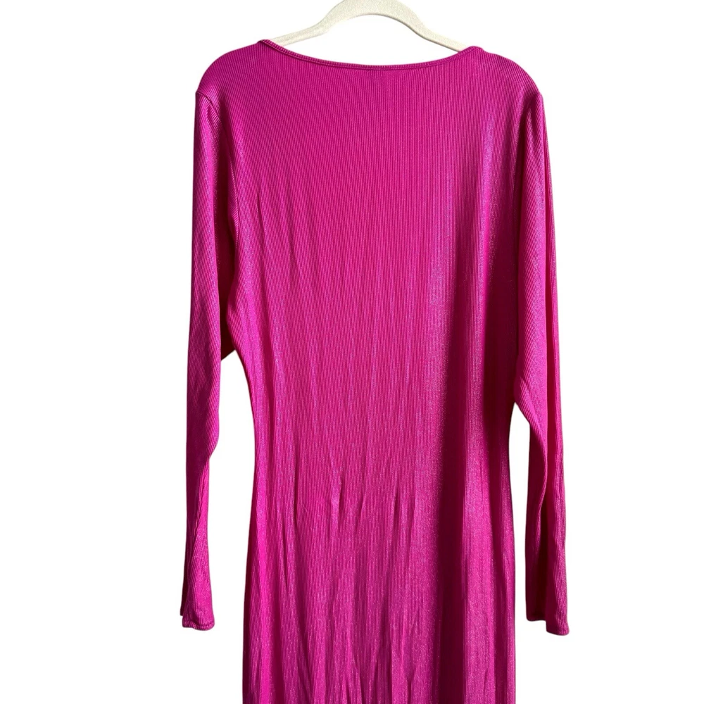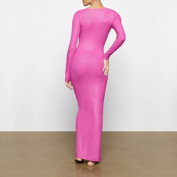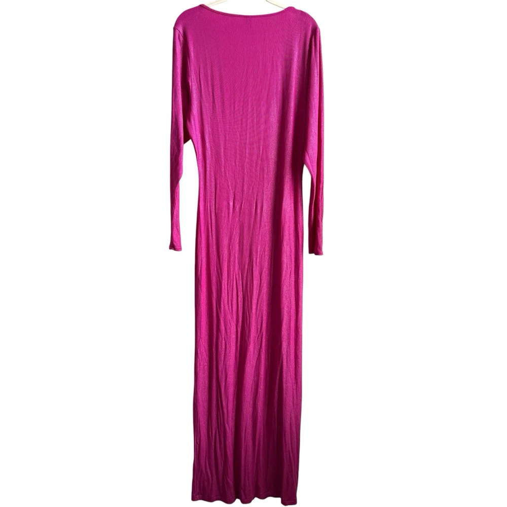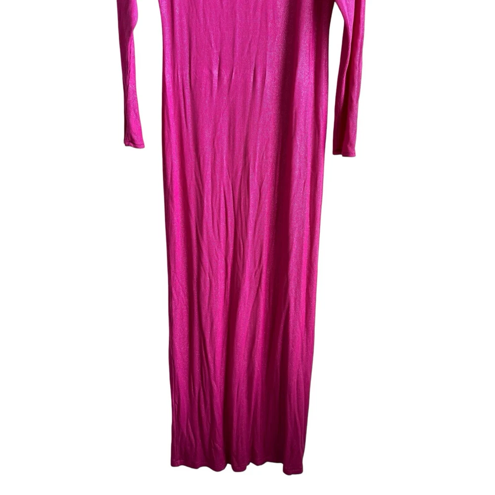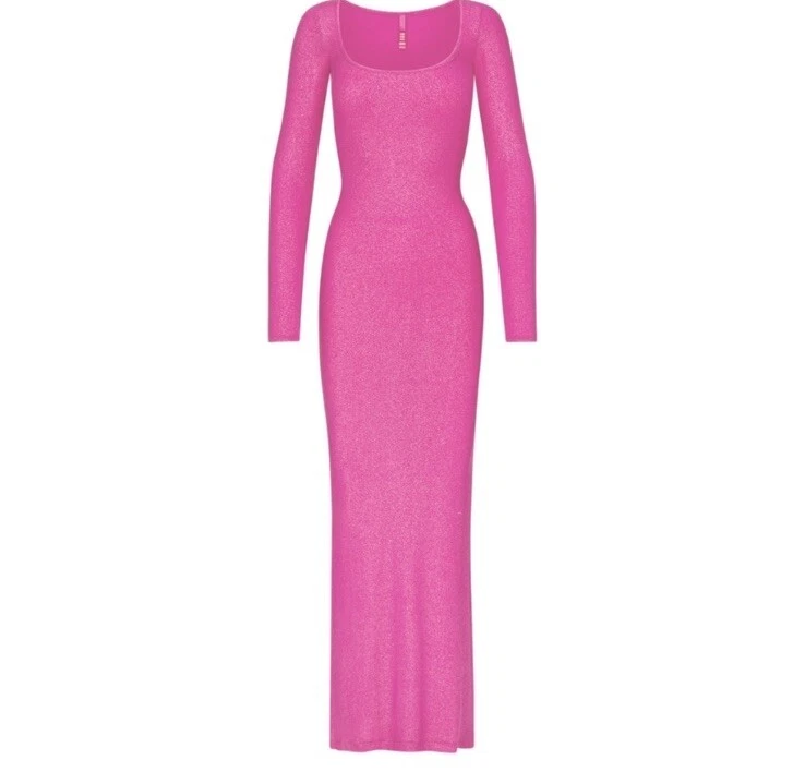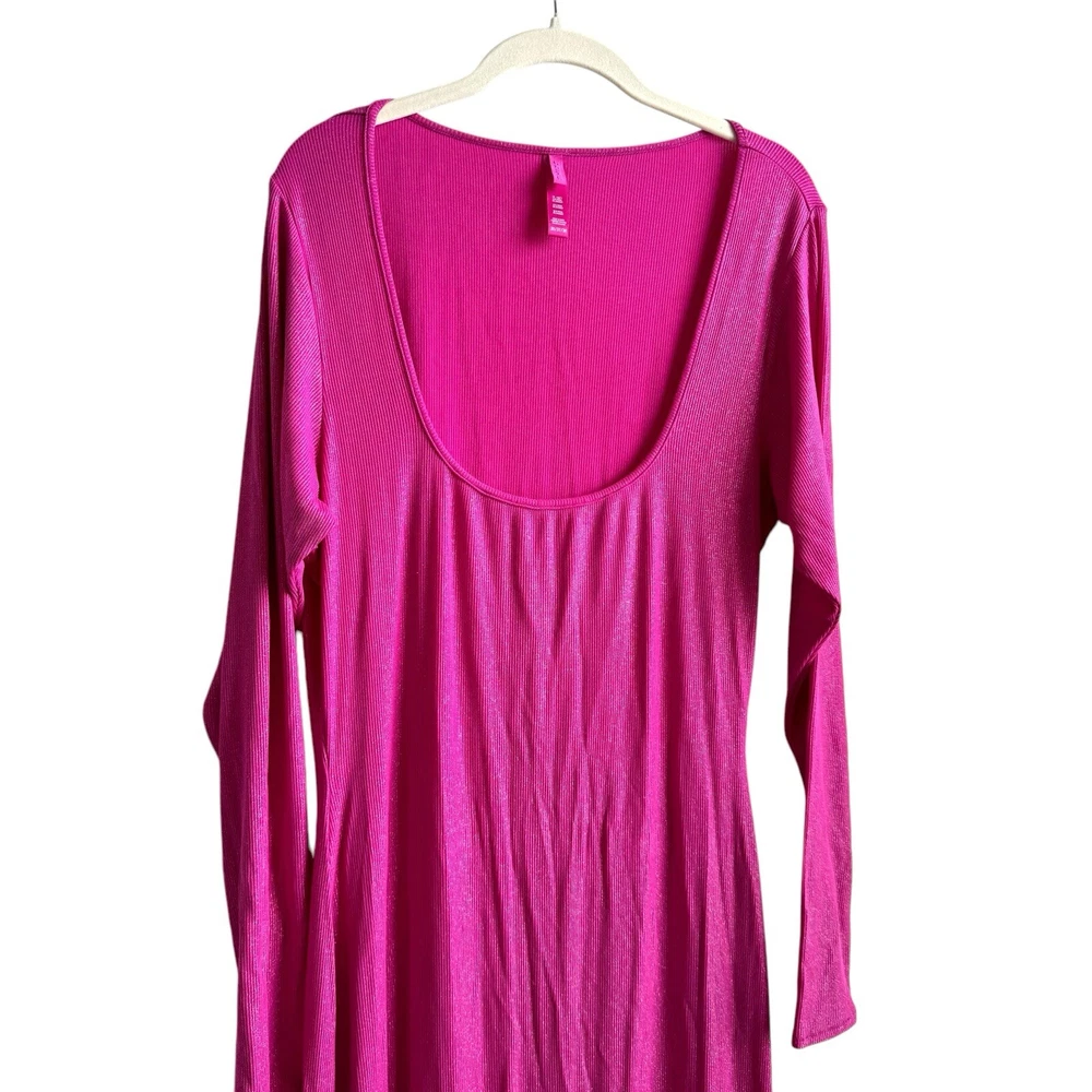 Skims Maxi Plus Size Dress Size 3X Pink Ribbed Long Sleeve Lounge Shimmer
