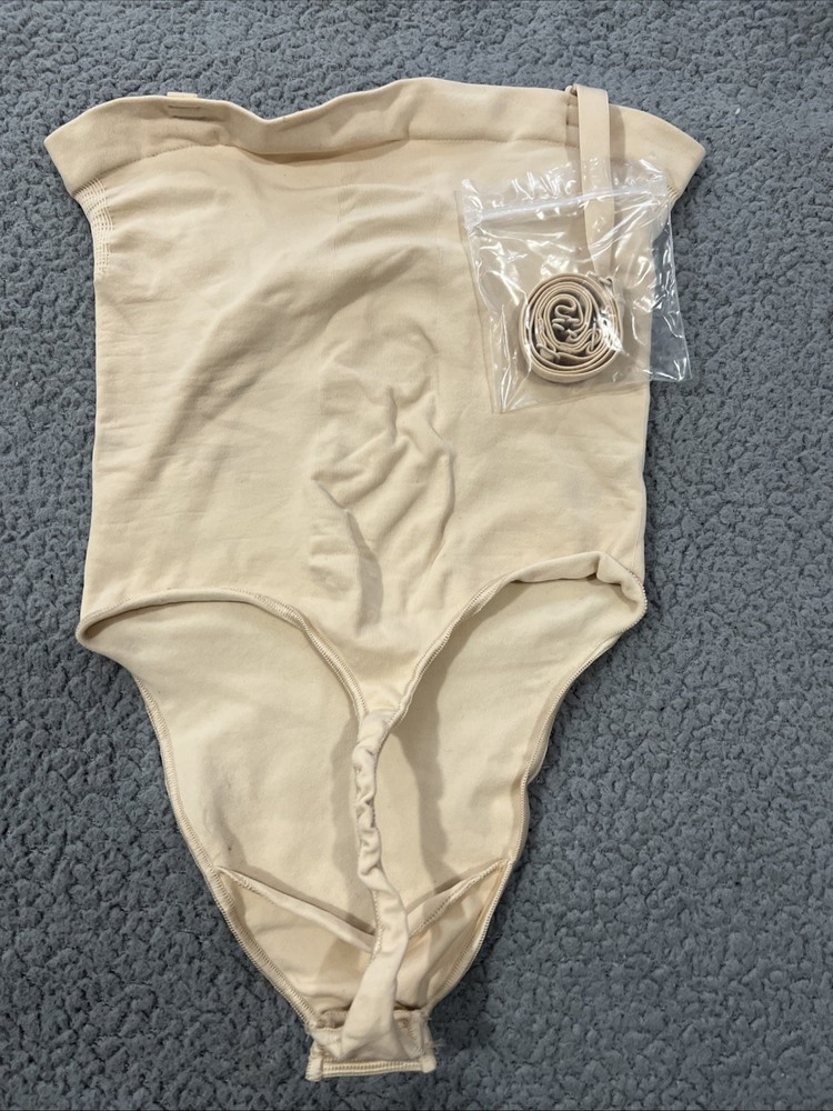 The Skims Seamless Sculpt Strapless Thong Bodysuit in size Large and beige color is a sleek and stylish shapewear piece designed for women. The bodysuit features a seamless construction for a comfortable fit and one-piece style for a flattering silhouette. With the Skims brand known for quality and innovation, this bodysuit offers a perfect blend of style and functionality for achieving a smooth and seamless look under clothing.