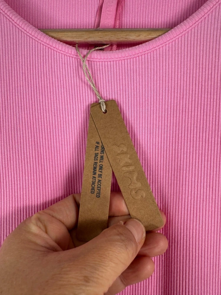 New with tag / light dirt make on bottom hem which should go away after wash Cotton candy pink hue meets ultra-soft ribbed fabric for a chic yet comfy vibe. Designed to hug your curves with a flattering maxi length that’s perfect for lounging or dressing up. Effortless, versatile, and a must-have staple for any wardrobe. Super stretchy and soft ribbed material! Sexy bodycon maxi dress perfect for casual wear to cocktail parties! Flat lay: (super stretchy) pit to pit 20" waist 17.5" Length 60" numeric bust waist hips SKIMS sizing guide: 4X 26-28 52.5 - 56" 46 - 49.5" 55.5 - 59" (smaller than size 4X will also fit well since it is ribbed and super stretchy) Material: 91% Modal 5% Spandex bodycon, 90s, Y2K, ribbed, maxi, bodycon, pink core, special edition, stretchy, romantic, date night, trendy, lounge wear, bubble gum, pastel goth, glam, bimbo PLEASE check all flat lay measurements and listings carefully BEFORE PURCHASE!I put in a lot of work into hand measuring and researching each items as best as I can! Thank you so much for your consideration! Please note that: RETURN SHIP FEE IS PAID BY THE BUYER! If you are not too familiar with flat lay measurements, I recommend taking a measurement of your own clothes that you feel comfortable and compare with the measurement I provide. For returns: The items MUST BE IN SAME CONDITION AS SOLD for full refund! We all don't like returns and let's work together to minimize! Please note that RETURNS ARE NOT ACCEPTED FOR NEW WITH TAG OR NEW WITHOUT TAG ITEMS!