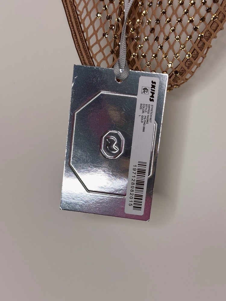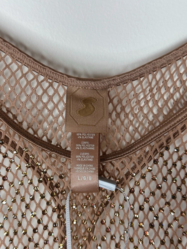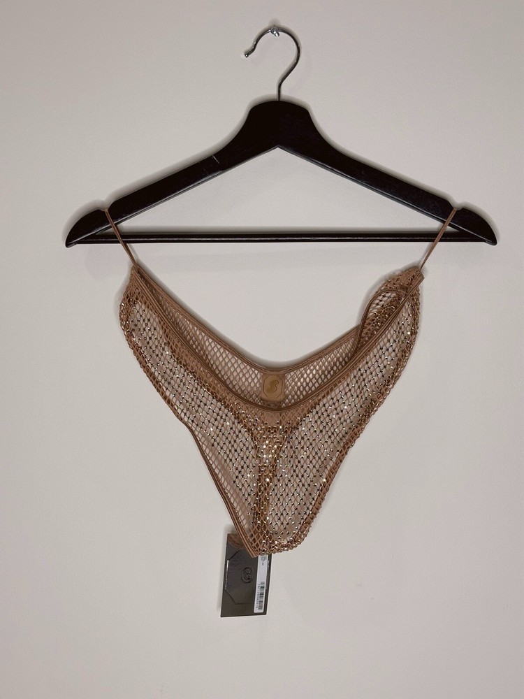Skims x Swarovski Stretch Net Dipped Thong Crystals Bubble Gum Beige Large