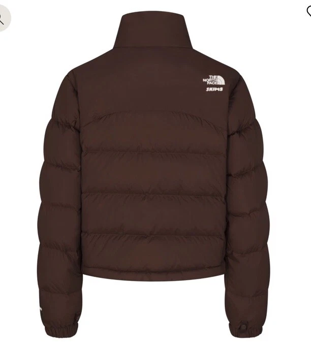 In hand with proof of receipt available Crafted for both style and comfort, the Skims x The North Face Retro Nuptse Jacket in a tasteful cocoa brown is a must-have for the modern wardrobe. This size extra small, regular fit puffer jacket combines a classic aesthetic with contemporary design elements, featuring an embroidered logo that adds a touch of sophistication. The nylon outer shell and lining ensure durability, while the down insulation keeps you warm during the brisk fall and winter months. Functionality meets fashion with this jacket's full zip closure, collared design, and wind-resistant properties, making it an ideal choice for those casual outings. The solid colour and short jacket/coat length offer versatility in styling, whether you're navigating the urban jungle or enjoying a weekend escape. Practical aspects include pockets for convenience and a hand wash only garment care to maintain its quality.