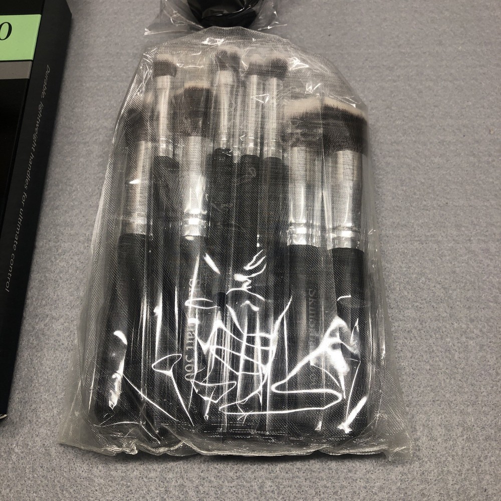 SkinSmart 360 Makeup Brush Set 10 Piece Black & Silver + Sponge Beauty Kit.