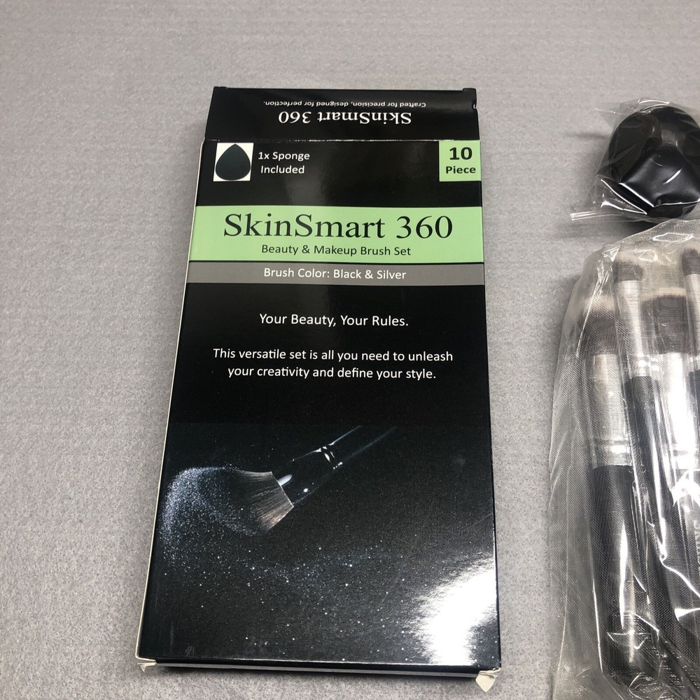 SkinSmart 360 10-Piece Makeup Brush Set with Black & Silver Sponge Beauty Kit