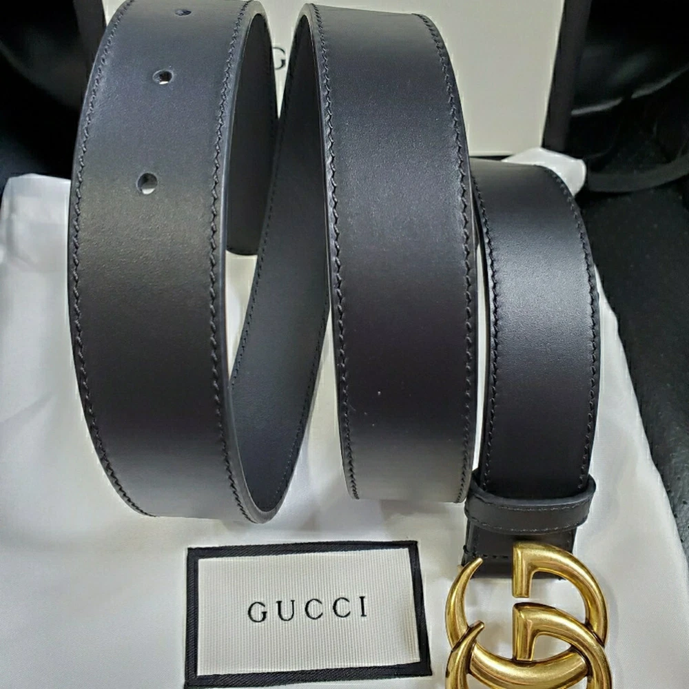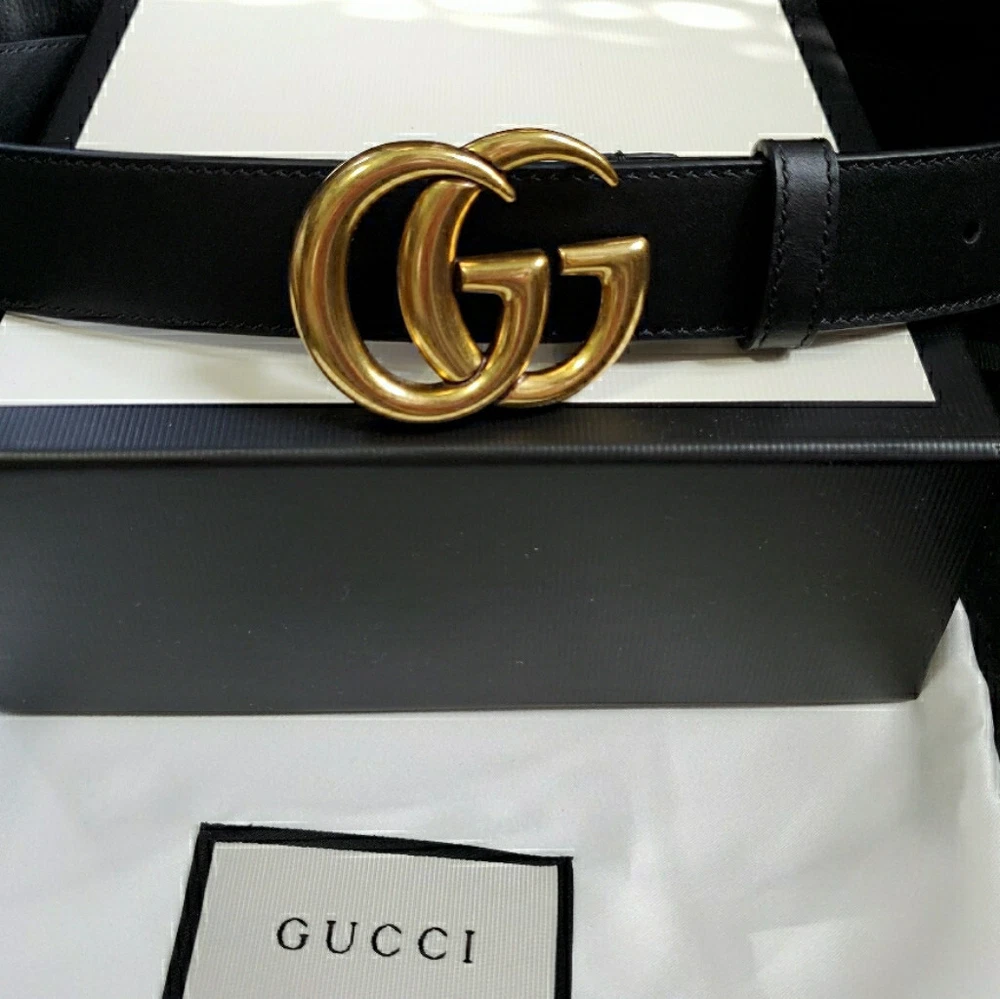 Authentic Womens Gucci Skinny Marmont Belt 1" Version Gold GG Buckle Comes with Dust Bag & Box as Shown 100% Authentic Size 85cm 28-30 waist or 4-6 dress size please check your size Will Ship as Soon as Purchased Arrives in 3 Days Time