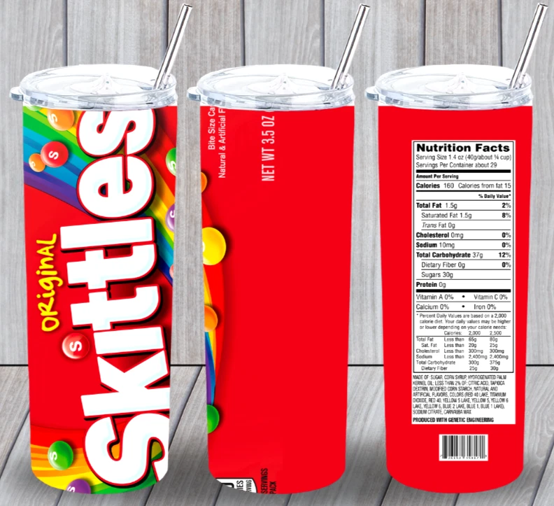 Skittles 2 Candy Multicolor 20oz Insulated Tumbler Lid Plastic Straw New
