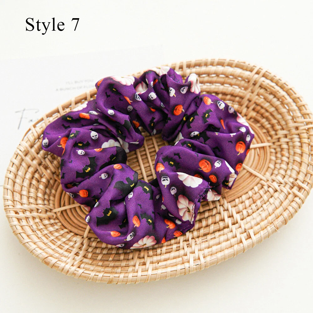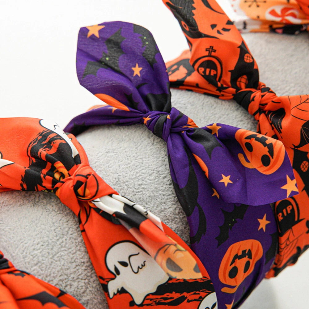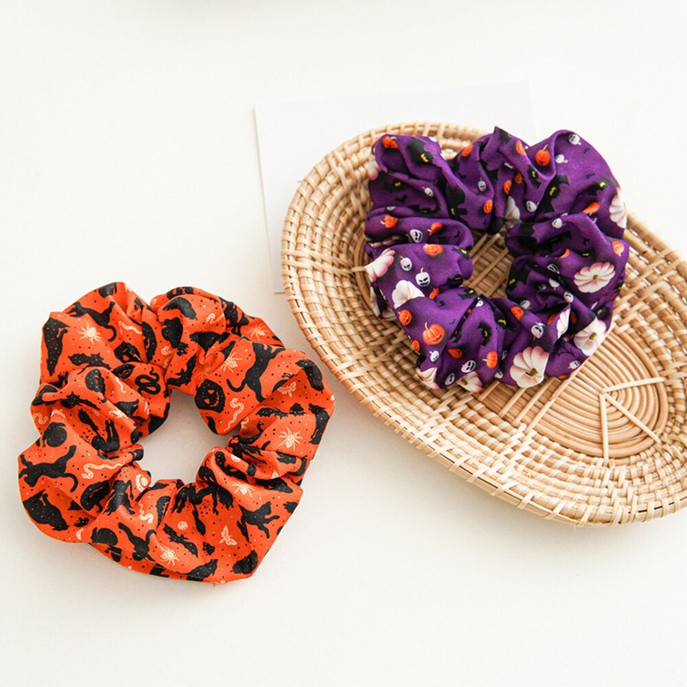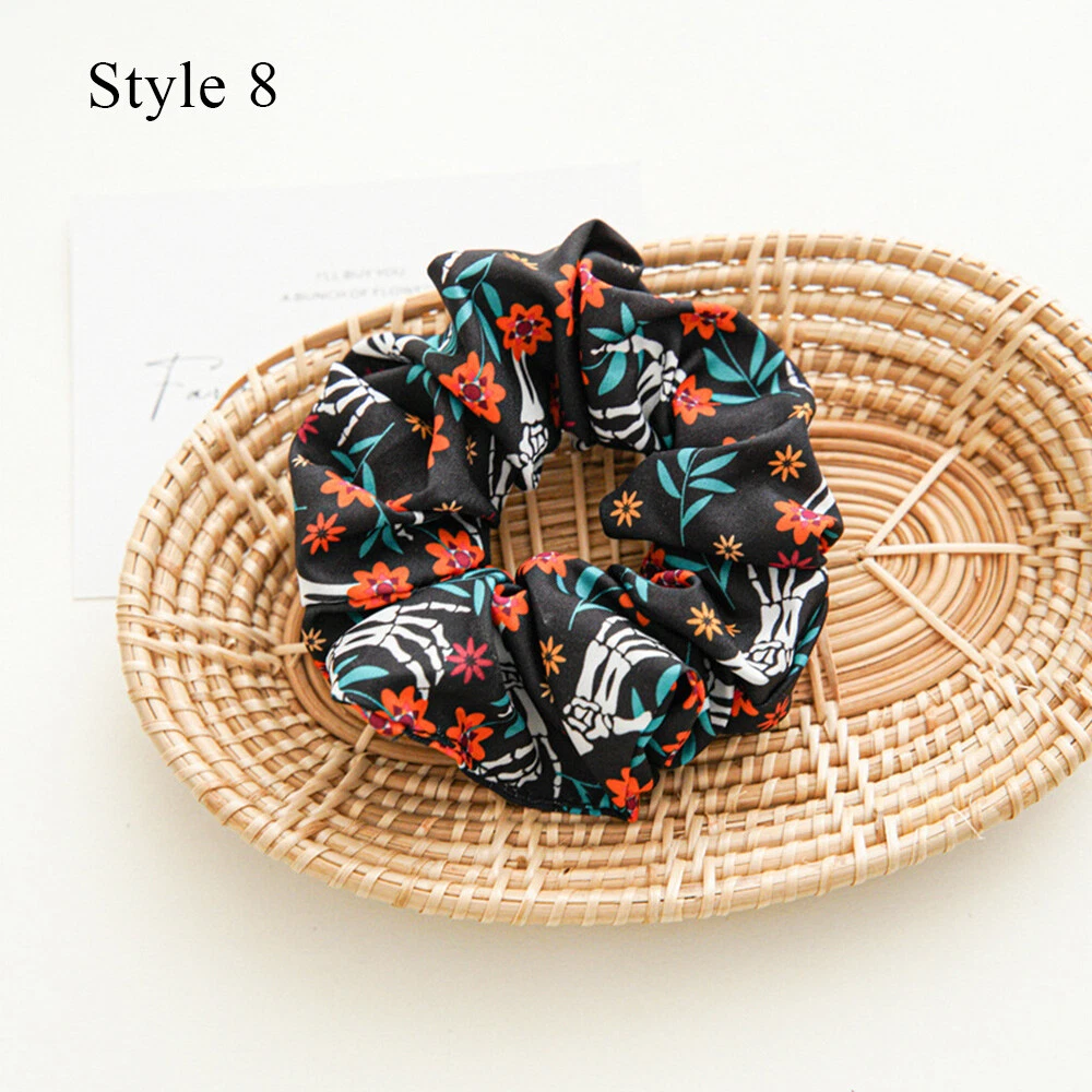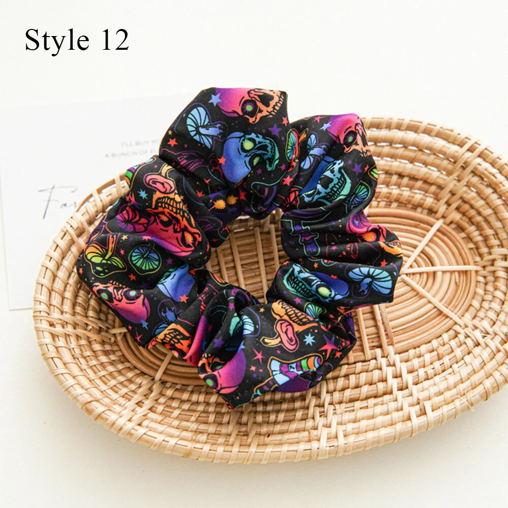 Skull Bat Pattern Hair Rope Bow-Knot Hairbands for Halloween DIY Headbands