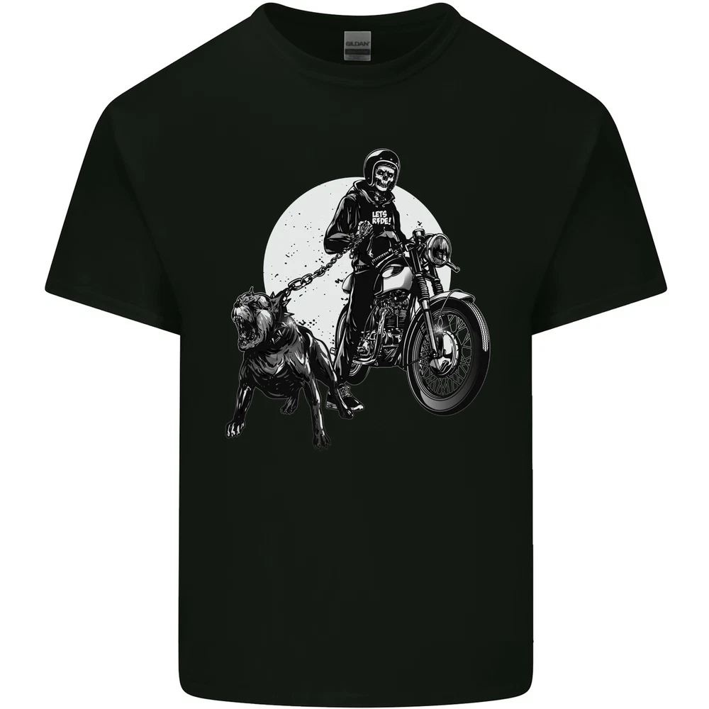 Skull Biker With Staffy Dog Motorbike Motorcycle Mens Cotton T-Shirt Tee Top