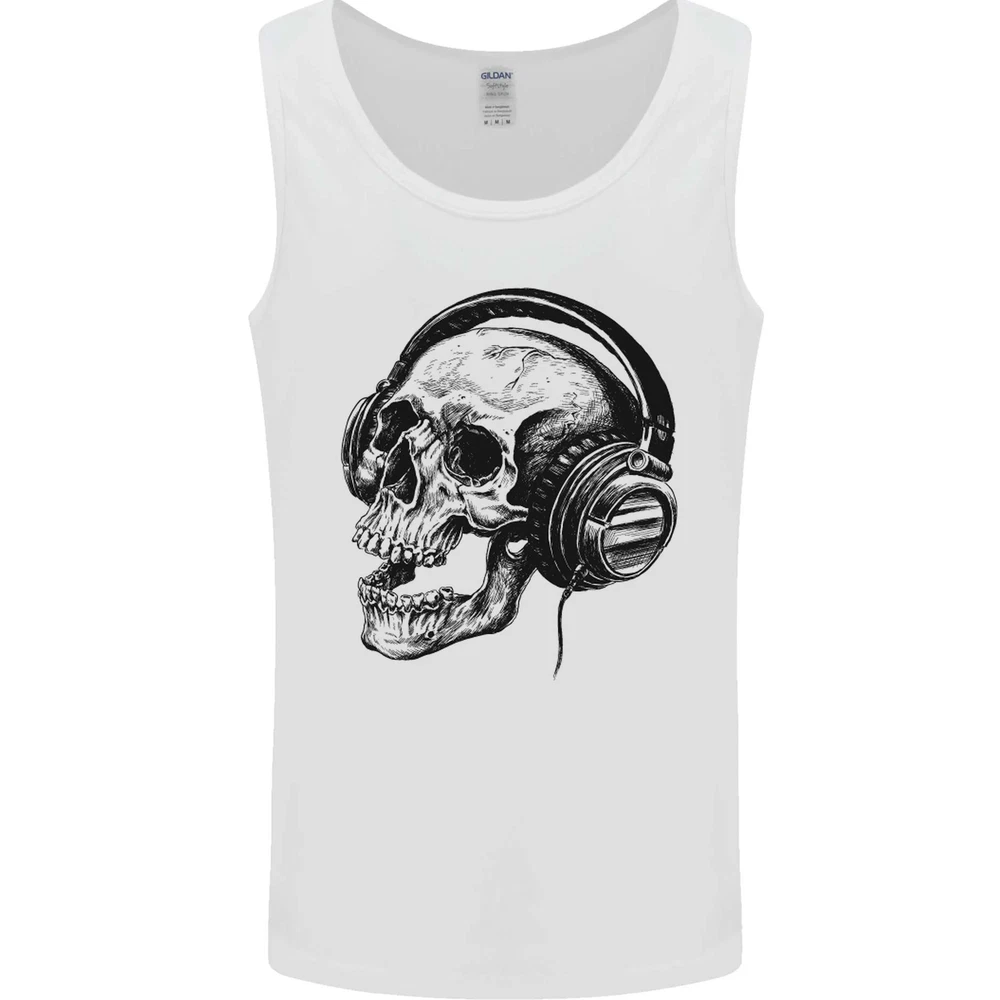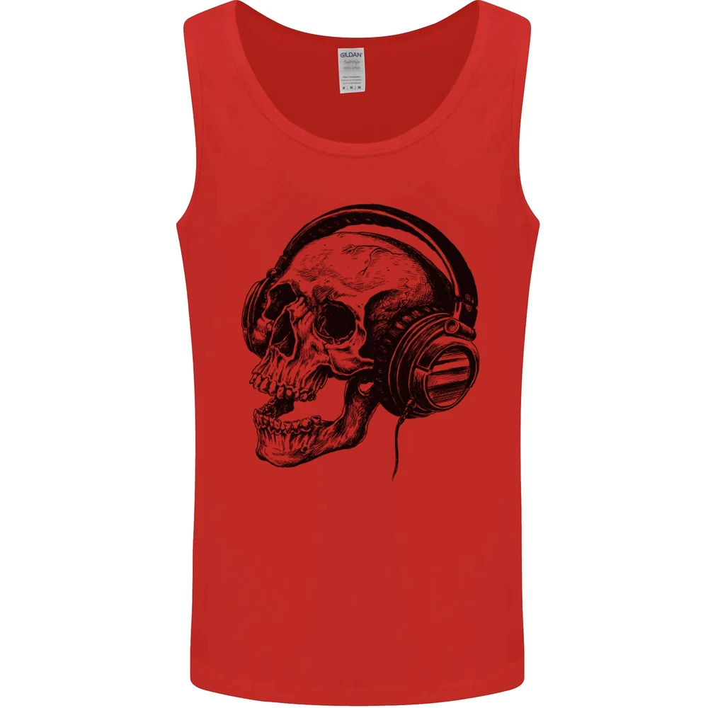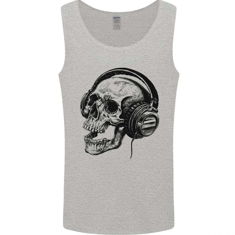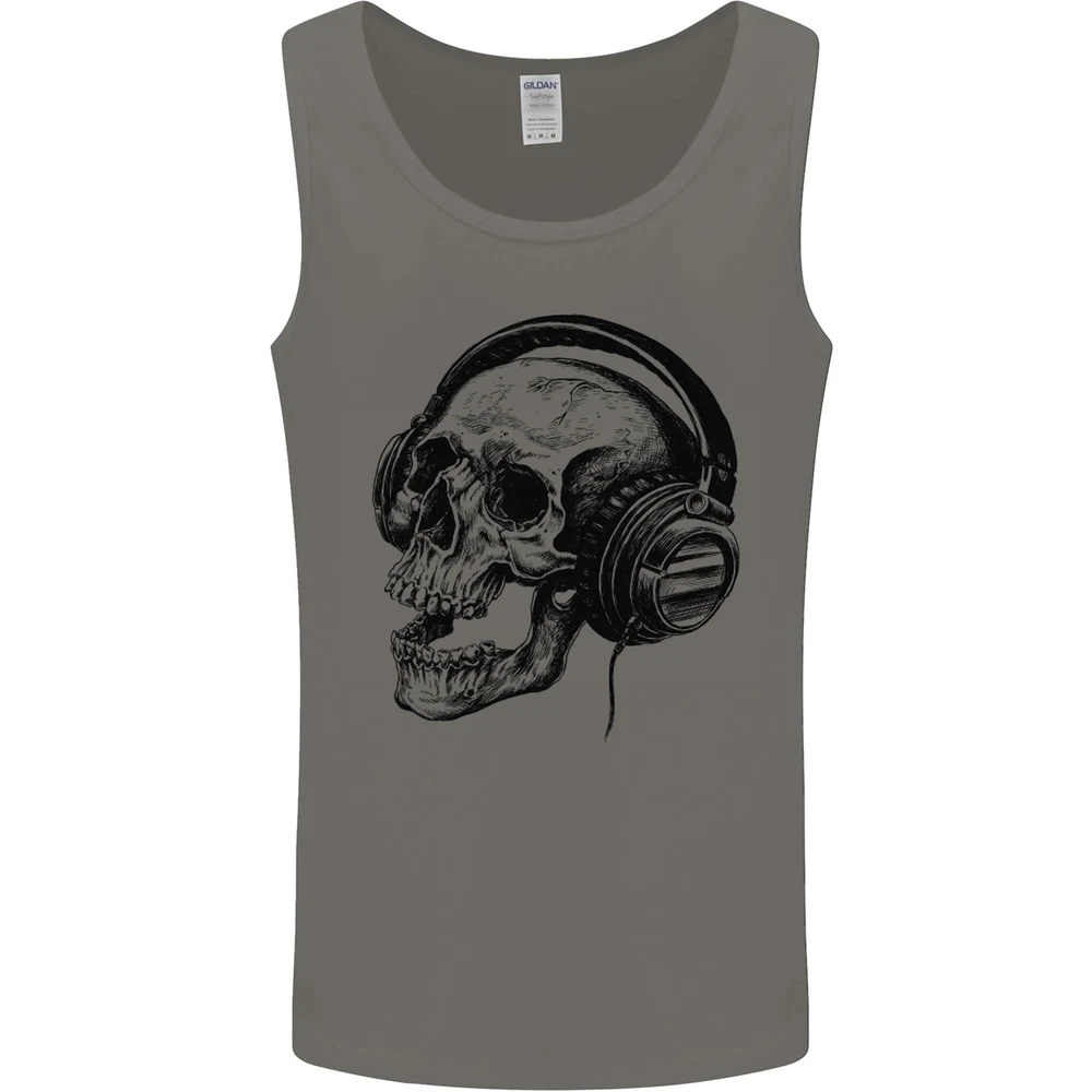 Skull Headphones Gothic Rock Music DJ Mens Vest Tank Top