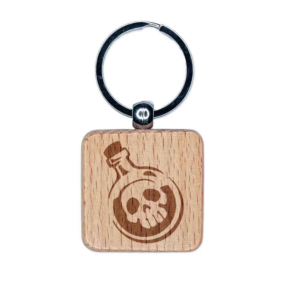 Skull Poison Potion Bottle Engraved Wood Square Keychain Tag Charm