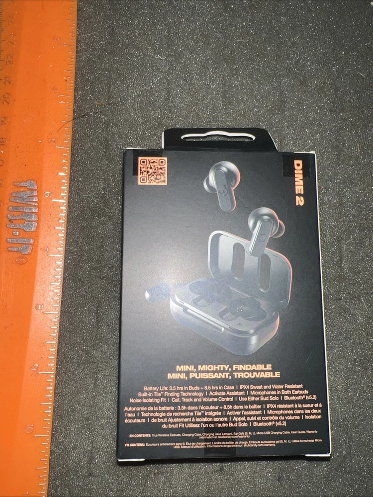 Model: Skullcandy Dime 2 Color: Black MPN: S2DBW-P740 Type: Earbud (In Ear) Microphone Type: Built-In Connectivity: Bluetooth Features: Water-Resistant Number of Earpieces: Double Form Factor: In-Ear Only Wireless Technology: Bluetooth Brand: Skullcandy