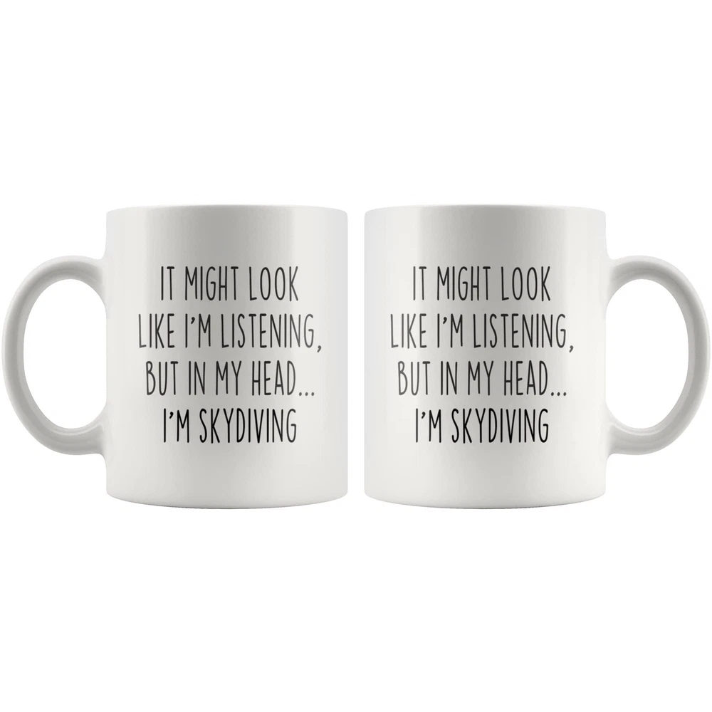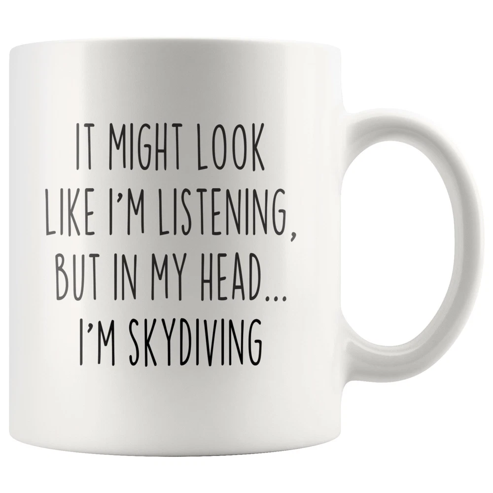 Skydiving Gift For Men Gift For Her Gift For Women Skydiving Mug Coffee Mug Gift Product Details.. This high quality 11oz. ceramic white mug has a premium hard coat that provides crisp and vibrant color reproduction sure to last for years. Perfect for all hot & cold beverages. The highest quality printing possible is used. It will never fade no matter how many times you wash it. Material: 100% Ceramic. Print both sides. Dishwasher and Microwave Safe. High Gloss + Premium White Finish. Printed in the U.S.A. Personalized & Custom. We support personalized and custom mug to add custom, when placing an order, you can add notes to the "order note" in shipping address section. Also you can contact us directly via message. Shipping Info. Ready to ship in 1 to 2 business days, All products are made-to-order and proudly printed in the United States. Shipped by USPS and DHL, You will receive your order in 5-7 days. Replace & Refund. All products are defective during shipping broken, chipped will be replaced free of charge. You are not satisfied with the product, we will refund 100% money to you. If any other issues arise, please do not hesitate to message, we would be more than happy to assist you.