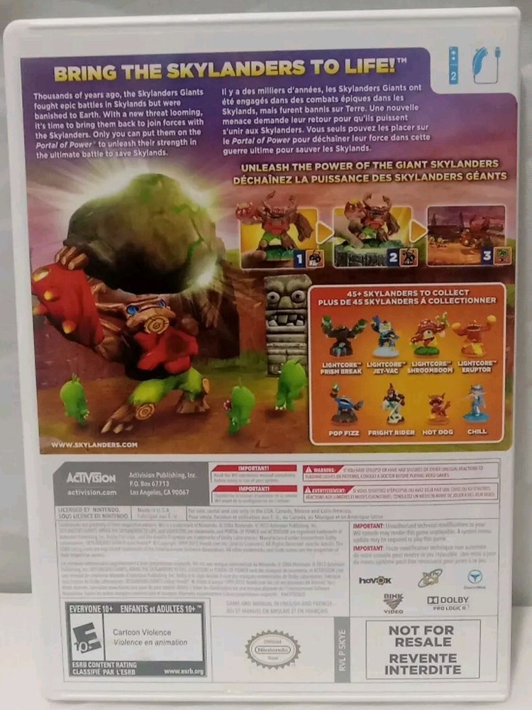 Embark on an epic adventure with the Skylanders: Giants for the Nintendo Wii. This game brings together the elements of action, adventure, battle, and family-friendly entertainment, offering a rich experience for players of all ages. Published by Activision Classics, it's a must-have for fans of the Skylander series. Released in 2012 and rated E10+ for Everyone 10 and older, Skylanders: Giants features multiplayer options, allowing you to team up with friends or family. The game is in good condition has no visible scratches on disc,