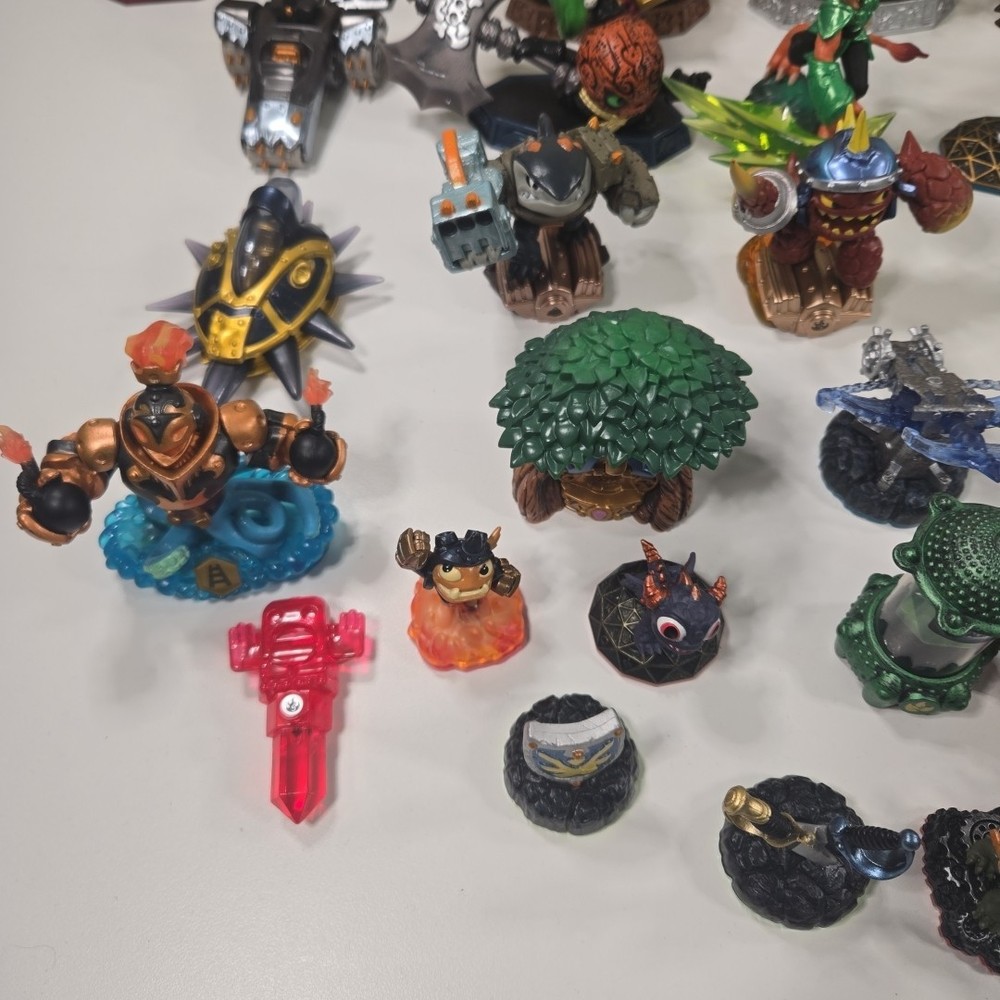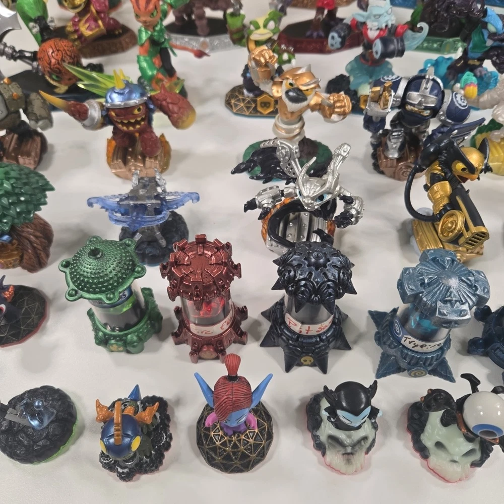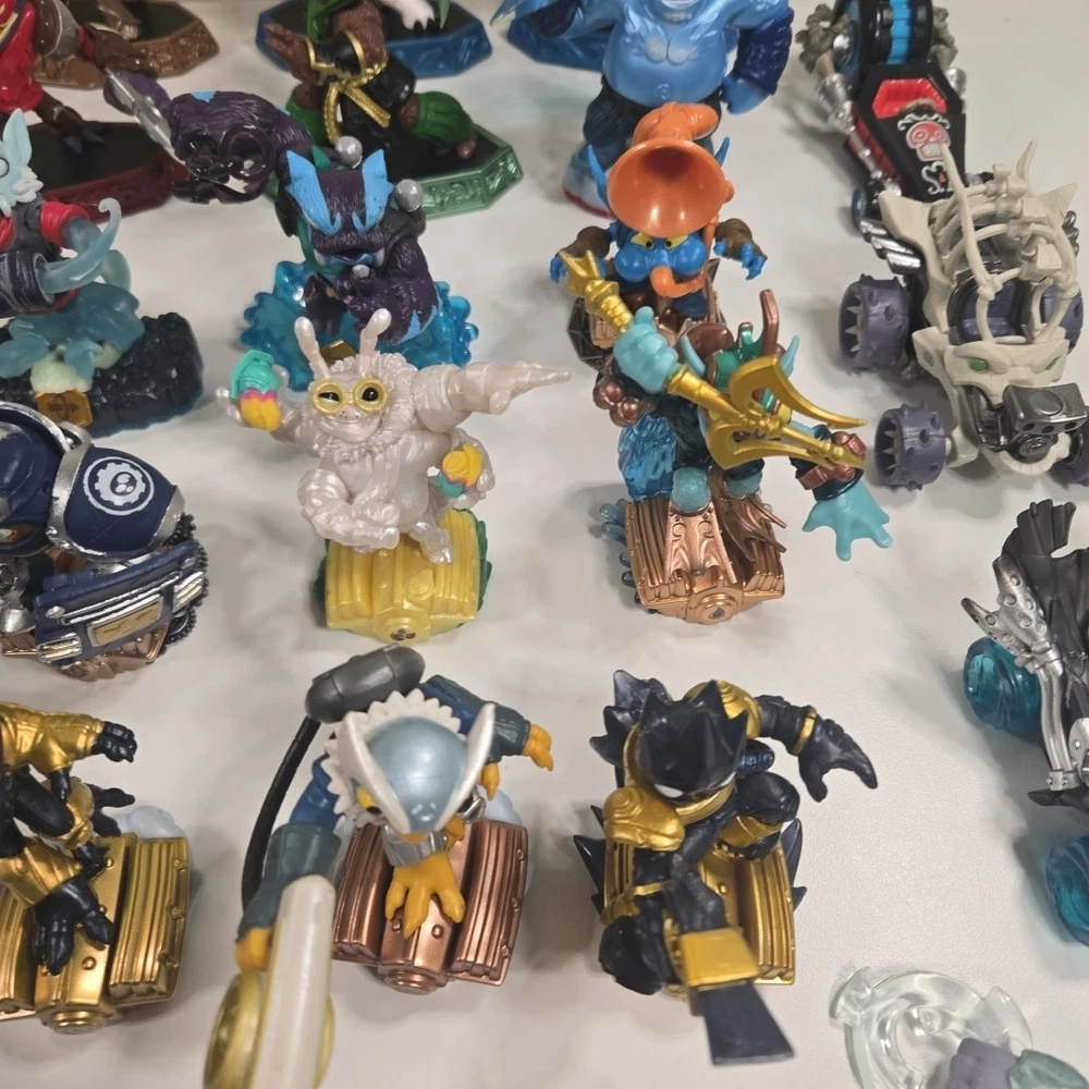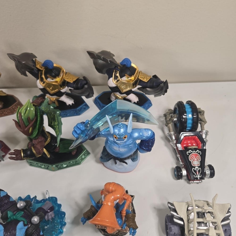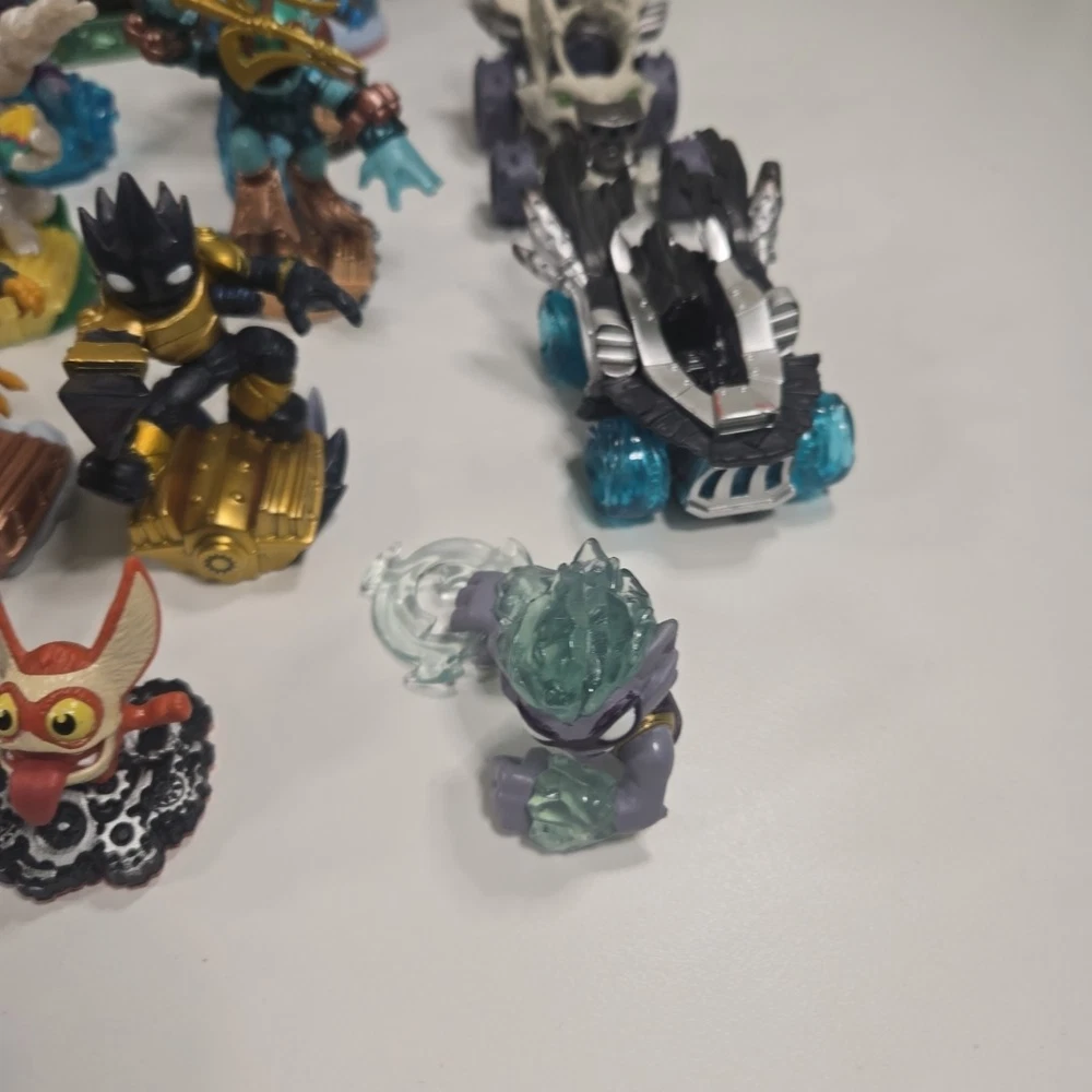 The 2 in the back right are broke (One missing his upper half and other missing arm). Besides that all the other ones are in good shape with minor wear. Comes with 3 incomplete swap force character and 2 duplicates. Comes with crystals and vehicles. See photos for what comes in the lot exactly.