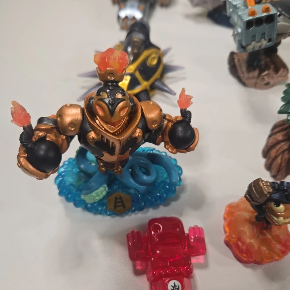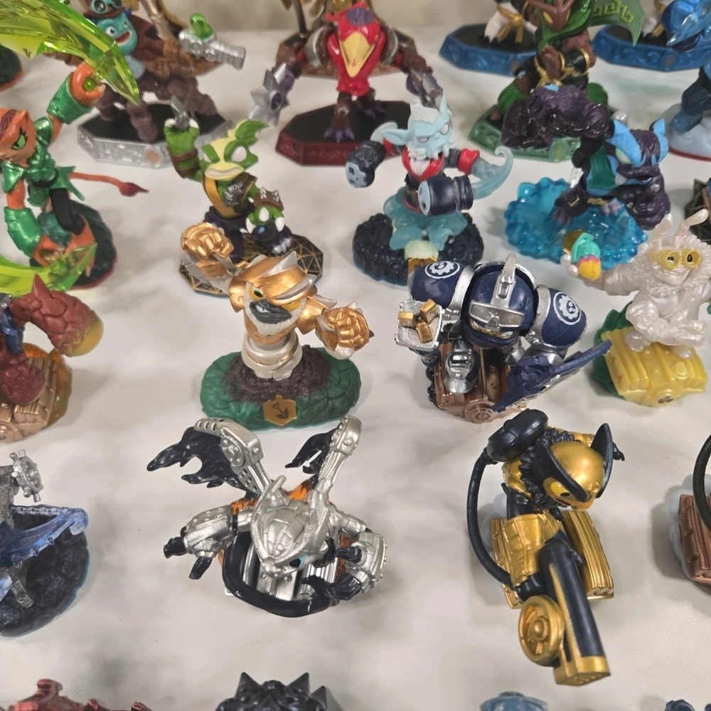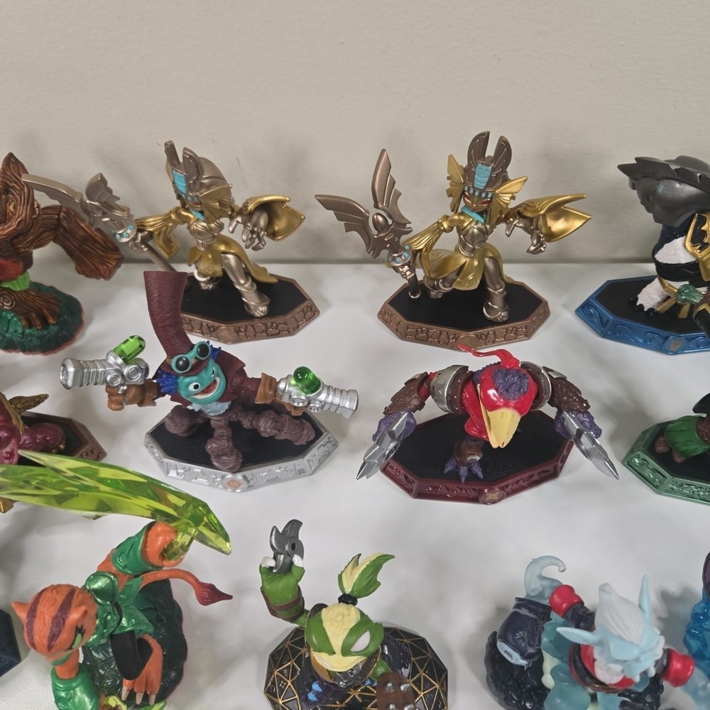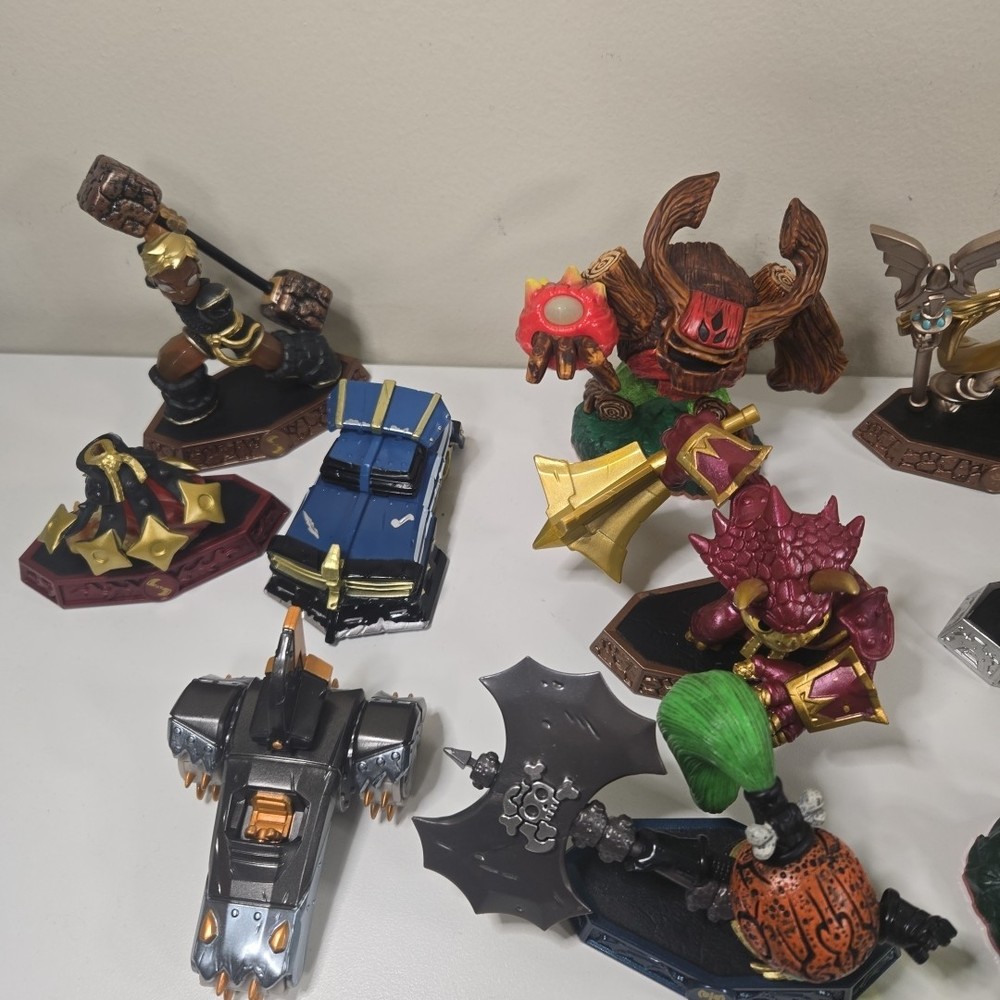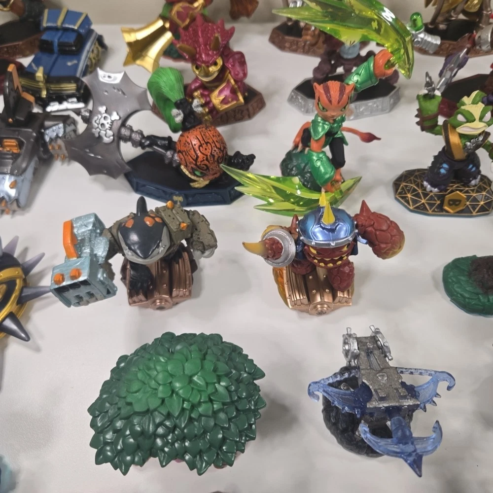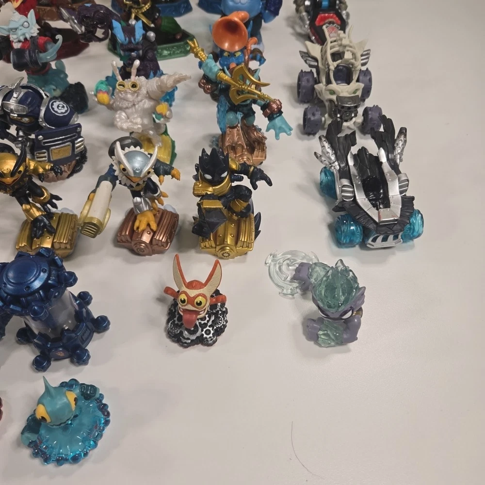 The 2 in the back right are broke (One missing his upper half and other missing arm). Besides that all the other ones are in good shape with minor wear. Comes with 3 incomplete swap force character and 2 duplicates. Comes with crystals and vehicles. See photos for what comes in the lot exactly.