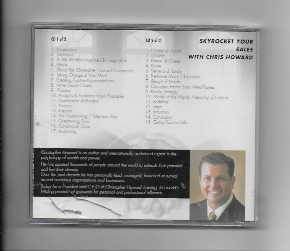 Skyrocket Your Sales with Chris Howard audiobook on CD. 2 CD's in very good condition. CD's play fine. Cracked case. Payment is due within 48 hours of purchase. If payment is not received within 48 hours of purchase, a non payment claim will be automatically filed. For international shipping, please consult Ebay's Global Shipping Program prior to purchasing or bidding. Please visit our Ebay store for more great items. Be sure to add me to your favorites list ! Memo: 9-7