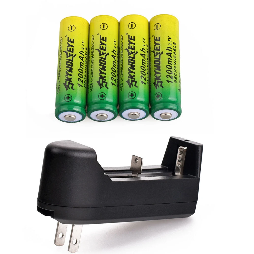 Introductions: Do you want the economical and greener lifestyles. Maybe you should start from minor matter, and just like use the rechargeable batteries. Rechargeable batteries adopt universal standards, most of them suitable for cameras, toys and many other electronic devices. Except that, it features extensively long working life and high efficiency, great for use. And it is compact and rechargeable, so you can carry it anywhere anytime, convenient to use. The number of charge cycles is about 1000 times, durable and reliable! Features: 1. New battery 2. High quality and durable 3. Provides excellent continuous power sources to your device 4. High energy density, long life battery 5. This battery has an extra long life for all your battery powered devices 6. Fit for camera, MP3/MP4 Player, electronic toys and other electronic devices Specifications: 1. Battery Type: 14500 Rechargeable Lithium battery 2. Rechargeable Time: about 3 hours 3. Battery capacity: 1800mAH 4. Battery voltage: 3.7V 5. Battery color: Green 6. Brand:SkyWolfEye 7. each Weight: 17 g / 0.6 oz 8. Per Dimensions: 5x1.4 cm / 1.97x0.55 inch (H x Dia.) Smart Charger Description: Type: Electric Color: black Imput : AC 110-220V 47-63HZ Output current: DC3.7V 500mah Charging time: 2 to 4 hours Can charge /186'50/16340/14500/10440 ect. 828M Four-slot lithium battery charger Description: * LED indicator shows current charging status. * Connect power indicator light: Red light * Charging indicator light: Red light * Full charge indicator light: Green light * Plug type: US plug * Suitable for:186'50/16340/14500/ 26650 Lithium rechargeable battery * Automatically stops when charging is complete. * Can charge four batteries at the same time. * Color: Black Package Included:( As picture show you choose ) Shipping Once we have received cleared full payment, your items will be dispatched in 1-3 days. It normally takes : 3-8 business days for US. if your shipment delays, we hope you can be patient, and at the same time contact us, we will try our best to help you. Returns If any item is defective upon receipt or do not work, please contact us for the return address, return is accepted within 30 days after the buyer receiving the item. Returned item has to be in its original condition. Buyer is responsible for return shipping costs . After receiving the return we will make a replacement depends on our available stock, if not available, a refund will be issued.