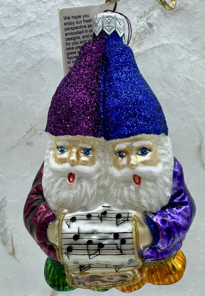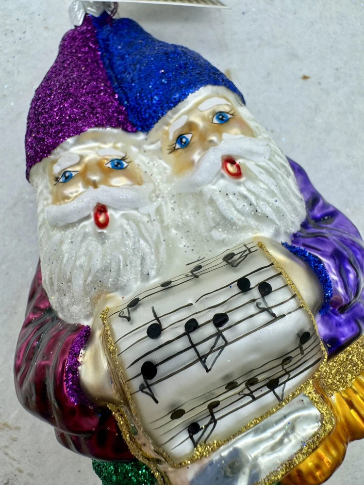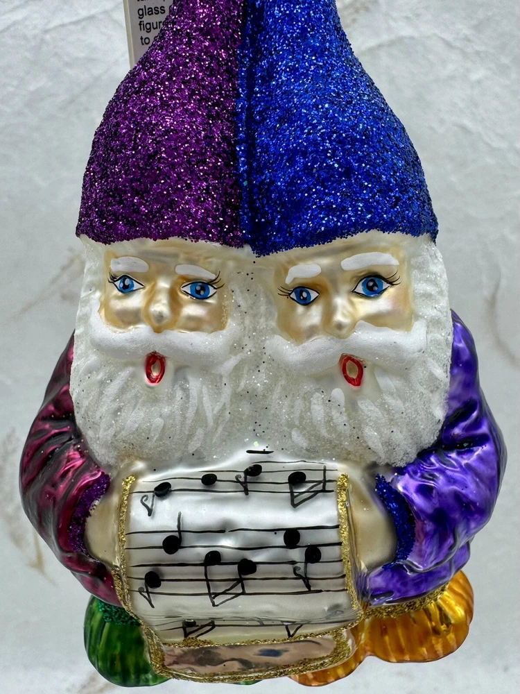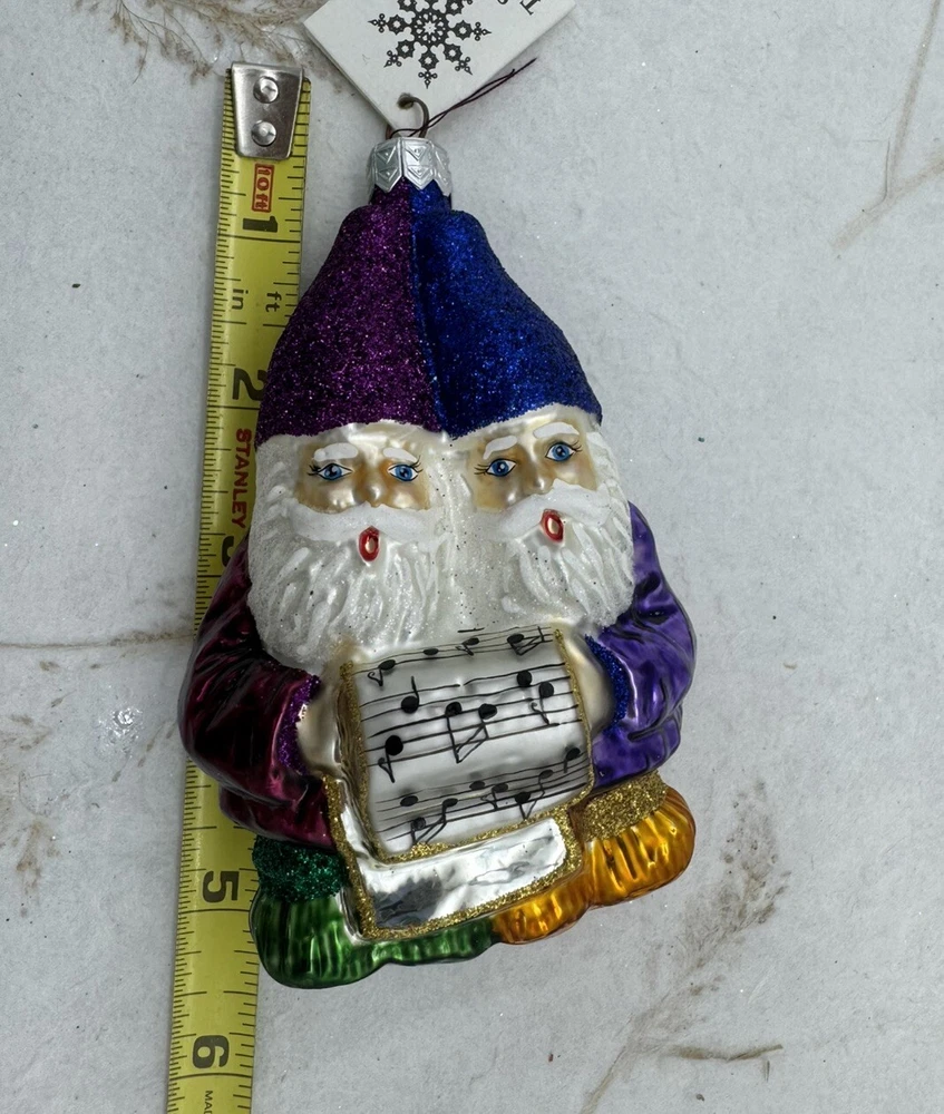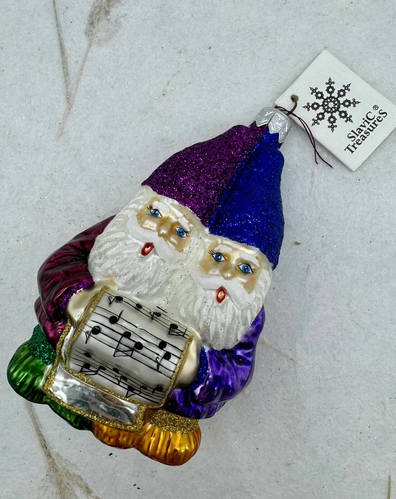Slavic Treasures Singing Gnomes Blown Glass Christmas Ornament W Tag 4.5”