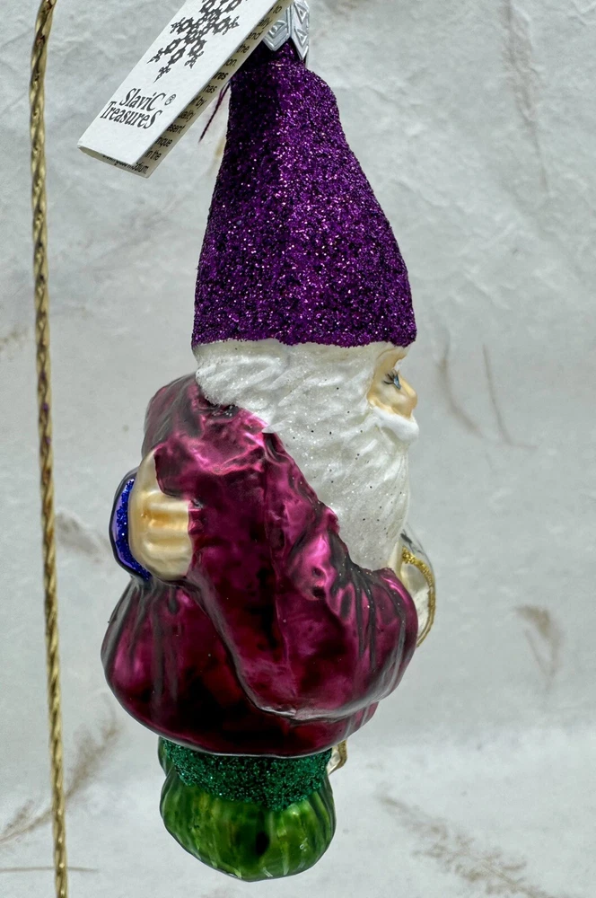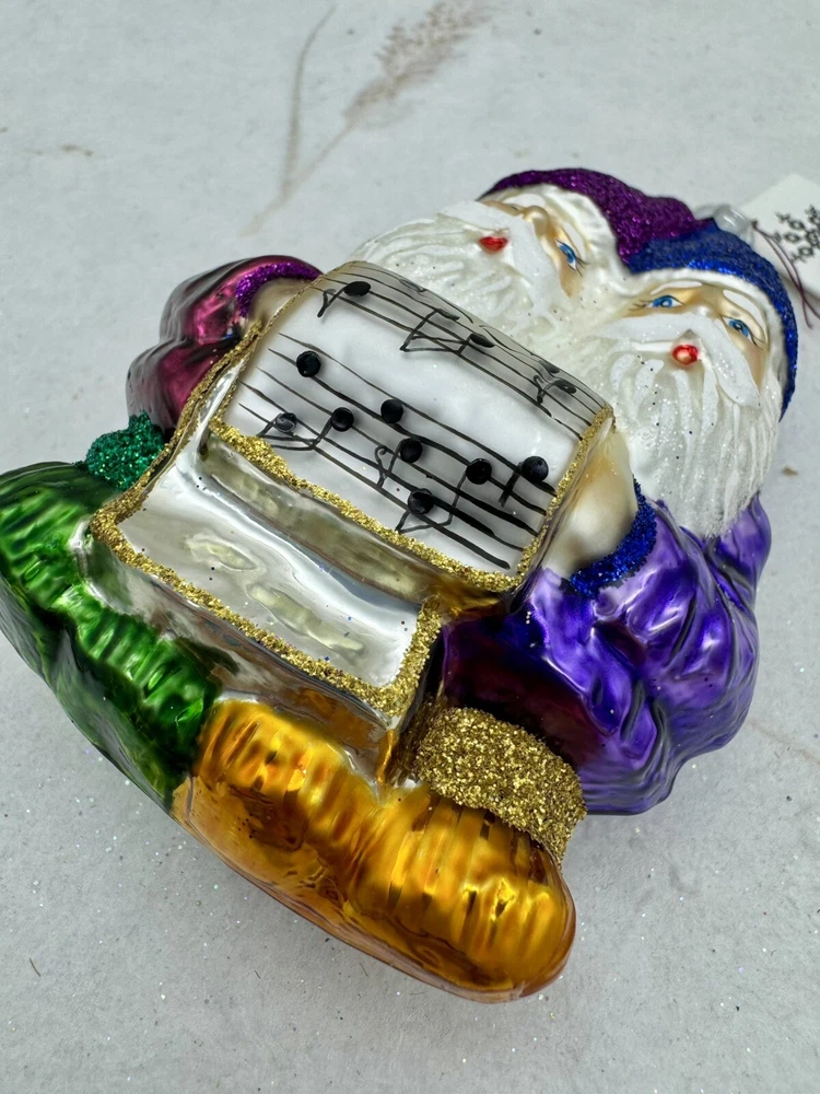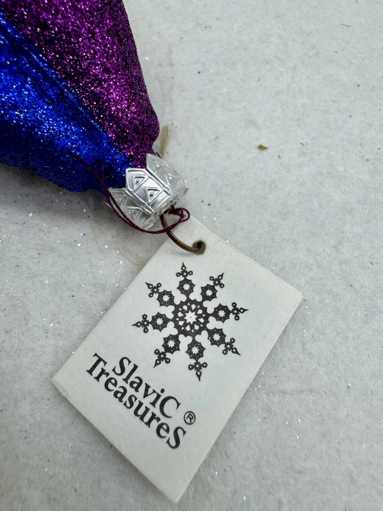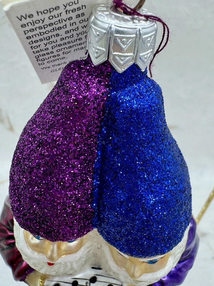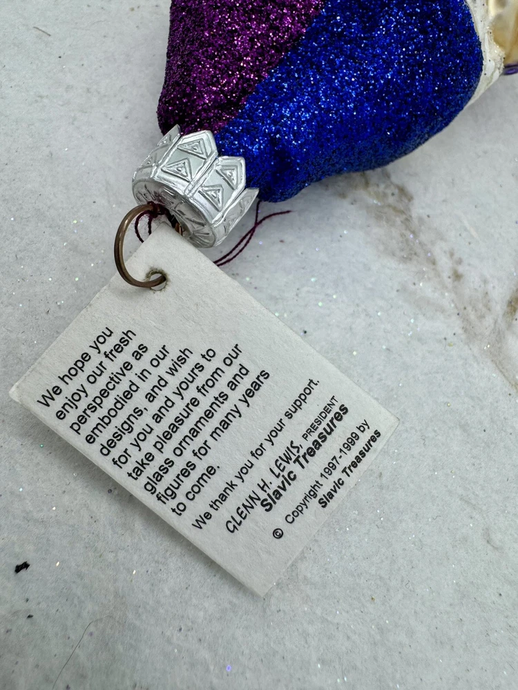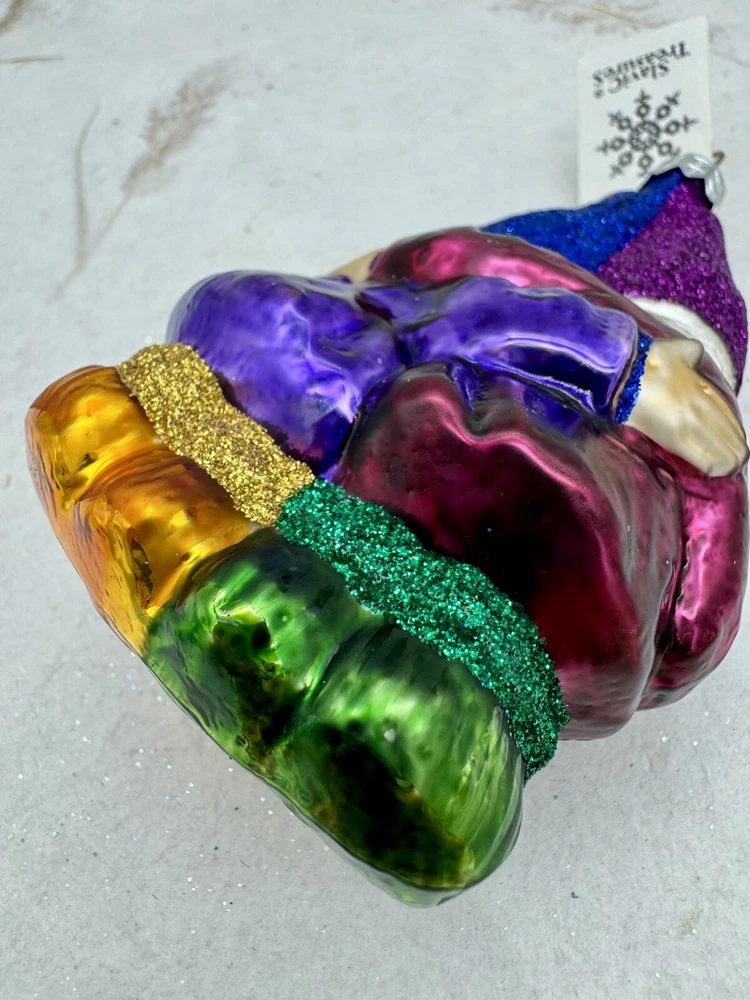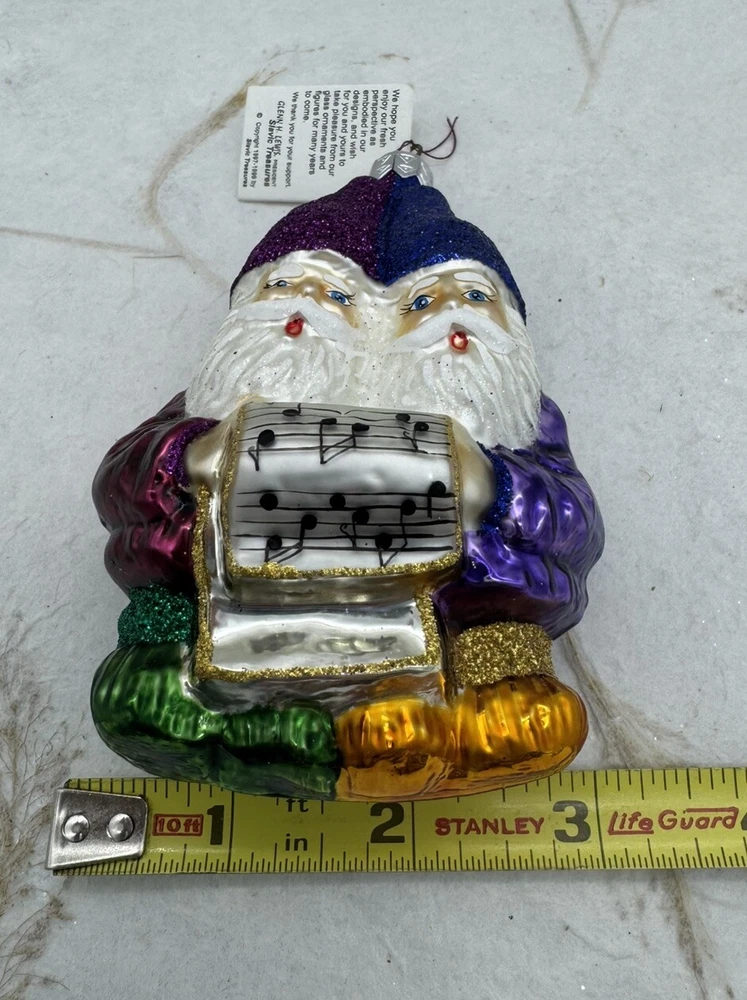 πŸŽ„ This unique Christmas ornament from Slavic Treasures features a delightful figural shape of singing gnomes, hand-painted with glitter accents on blown glass. πŸŽ„ Measuring 4.5 inches in height and 3 inches in width, this medium-sized ornament is a perfect addition to any collection. πŸŽ„ The vintage design and art glass production style make it a valuable and timeless piece. πŸŽ„ Celebrate your holiday season with this one-of-a-kind ornament that is sure to bring joy and cheer to your home. πŸŽ„ The Slavic Treasures Singing Gnomes Blown Glass Christmas Ornament comes with a tag and is an original, handmade piece from Poland. πŸŽ„ Add it to your collection of ornaments and make your Christmas tree stand out with this charming gnome ornament. πŸŽ„ Very nice preowned condition with minimal wear. πŸŽ„ Please view photos for closer inspection and more details. πŸŽ„ Ornament stand not included. Thanks for shopping πŸŽ„