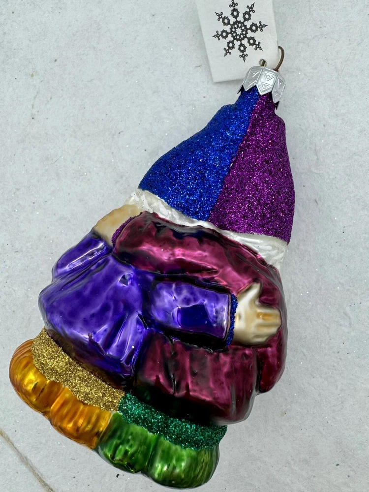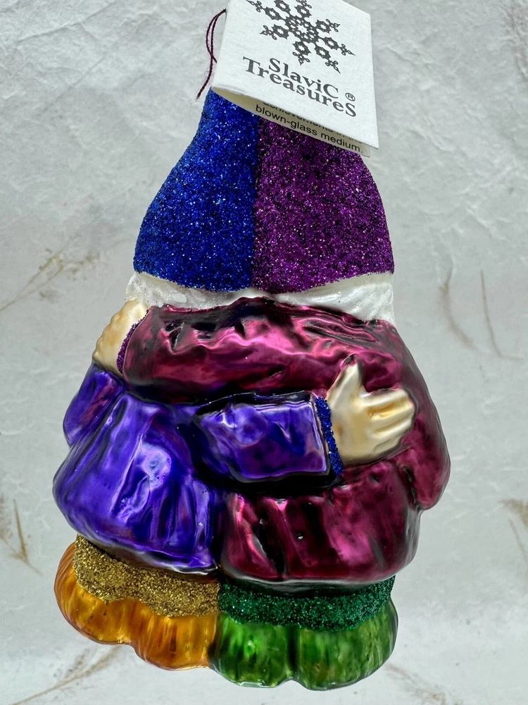 Occasion: Christmas Size: Medium Character: Singing Gnomes Handmade: Yes Features: Vintage, Hand Painted, Glitter Accents Original/Licensed Reproduction: Original Production Style: Art Glass Type: Ornament Brand: Slavic Treasures Subject: Gnomes Number of Items: 1 Country/Region of Manufacture: Poland Shape: Figural Collection: Ornaments Color: Multicolor Item Width: 3 in Item Height: 4.5” Theme: Gnomes Material: Glass Time Period Manufactured: 1990-1999 Vintage: Yes