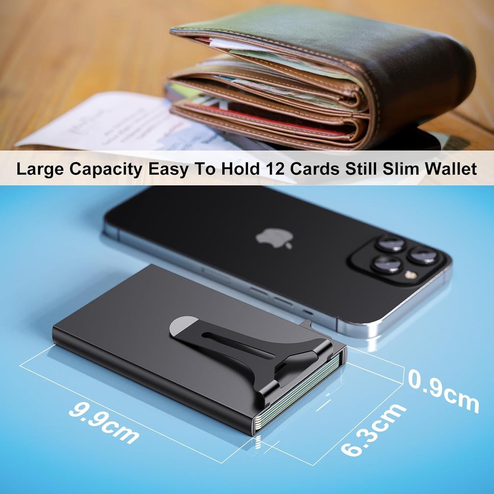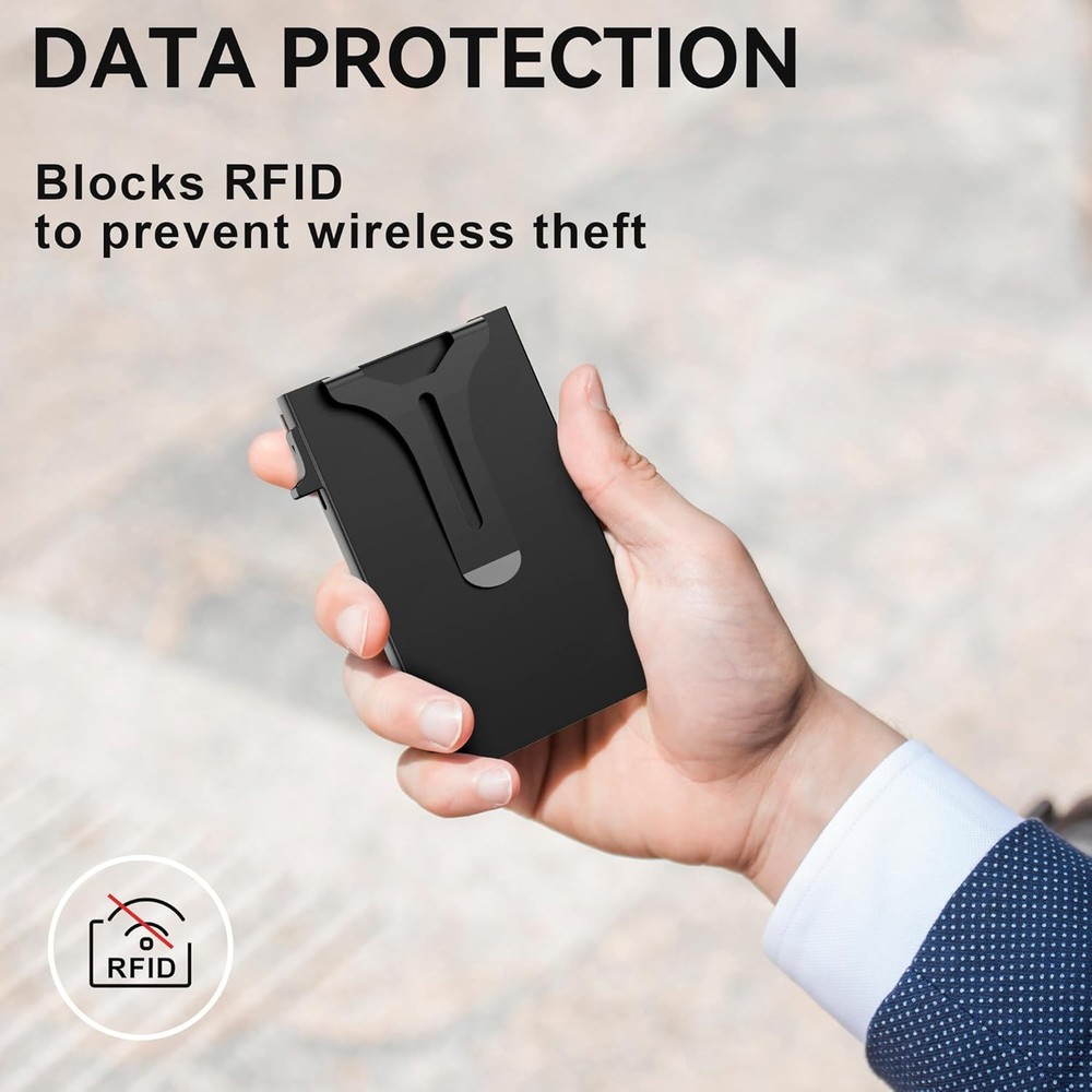 This sleek RFID-blocking wallet is a game-changer! The slim, minimalist design fits perfectly in my pocket while holding all my essentials securely. The smooth metal money clip and sliding card mechanism make accessing cards effortless. Love the premium feel of the leather and metal combo—both stylish and functional. No more bulky wallets, just smart organization with a modern look. Perfect for everyday carry!