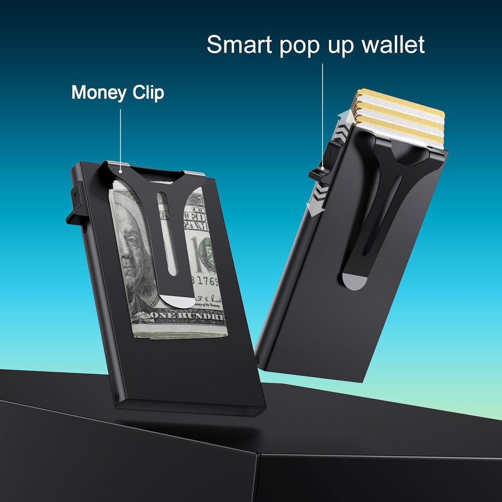 furid Wallet For Men with Money Clip: Smart - Metal Rfid Black Product Details Product Dimensions: 9.3 x 2.4 x 0.68 inches Item Weight: 2.39 ounces Department: Men Manufacturer: furid Country of Origin: China Item model number: smart wallet 002 Brand: furid Color: Black Material: Leather Style: Minimalist Pattern: Solid Upgrad Smart Wallet: The minimalist wallet sets the trend with its cutting-edge open-slot design, ensuring cards stay securely in place without the worry of accidental drops. The meticulously crafted sliding button grants you effortless and swift access to the cards you need. Slim Wallet with Money Clip: Effortlessly store up to 6 cards in this sleek wallet. If you require additional card capacity, explore our other styles for a perfect fit. The minimalist wallet ensures it remains slim and lightweight, facilitating easy daily carry. Money clip can hold cash. With dimensions measuring at 3.9*2.5*0.35 inches. Rfid Wallet for Men: High-quality aluminum makes this Slim Minimalist wallet a powerful Rfid Blocking credit card holder, allowing you to block possible unauthorized and contactless scanning in any situation. Gift for Men: Unique and modern aesthetic compared to traditional wallets, this minimalist wallet is perfect as a gift for friends and family who appreciate sleek, organizers, and cool designs. After-Sales Service: The wallet comes with after-sales service to ensure your satisfaction with the product. If you have any issues or concerns with the wallet, you can contact the seller for assistance. This provides peace of mind and ensures that you are happy with your purchase