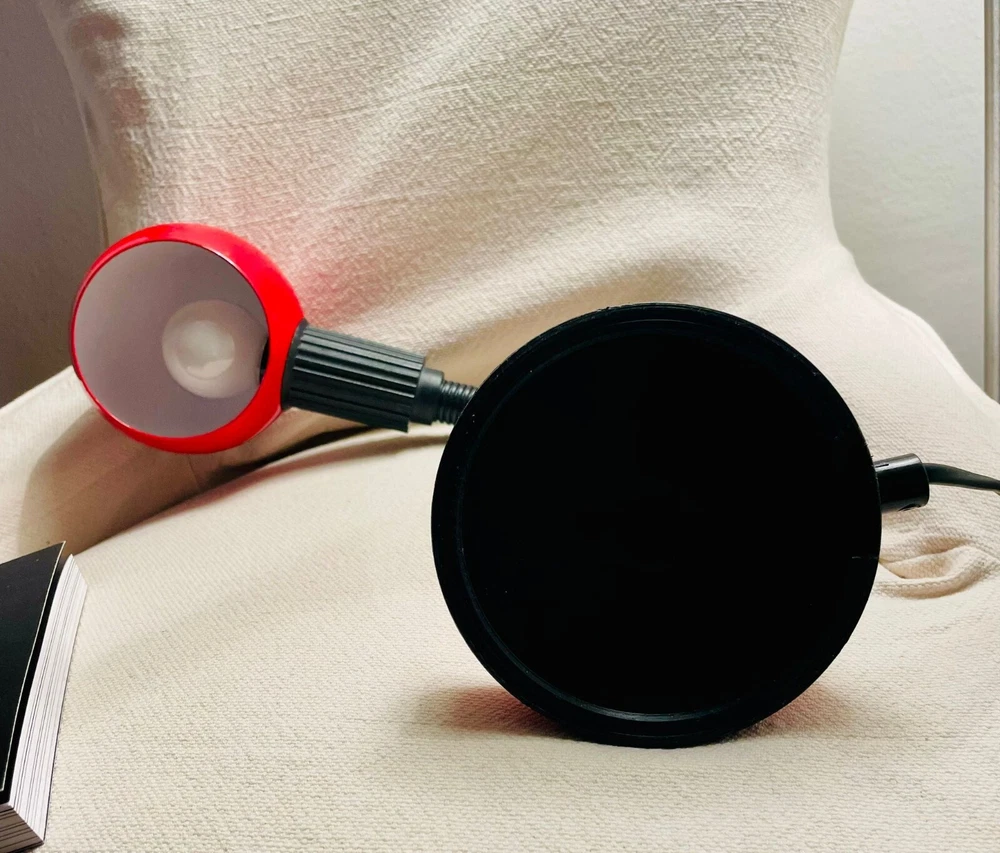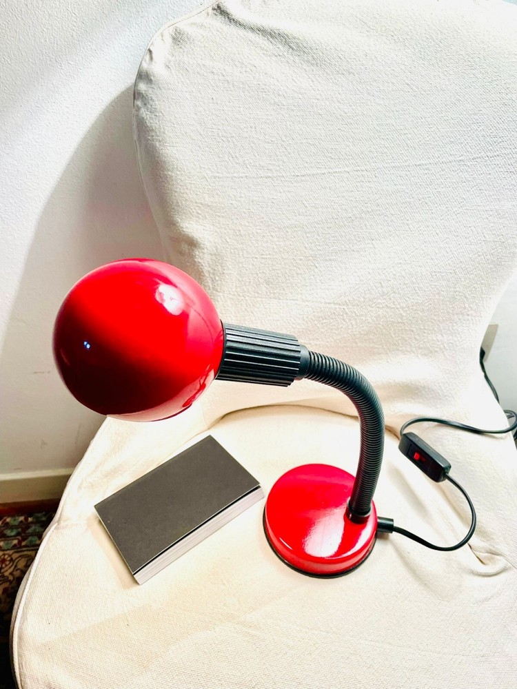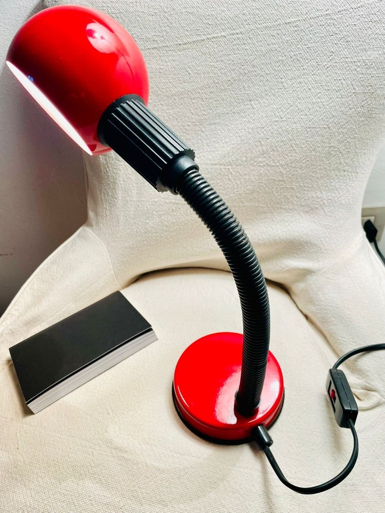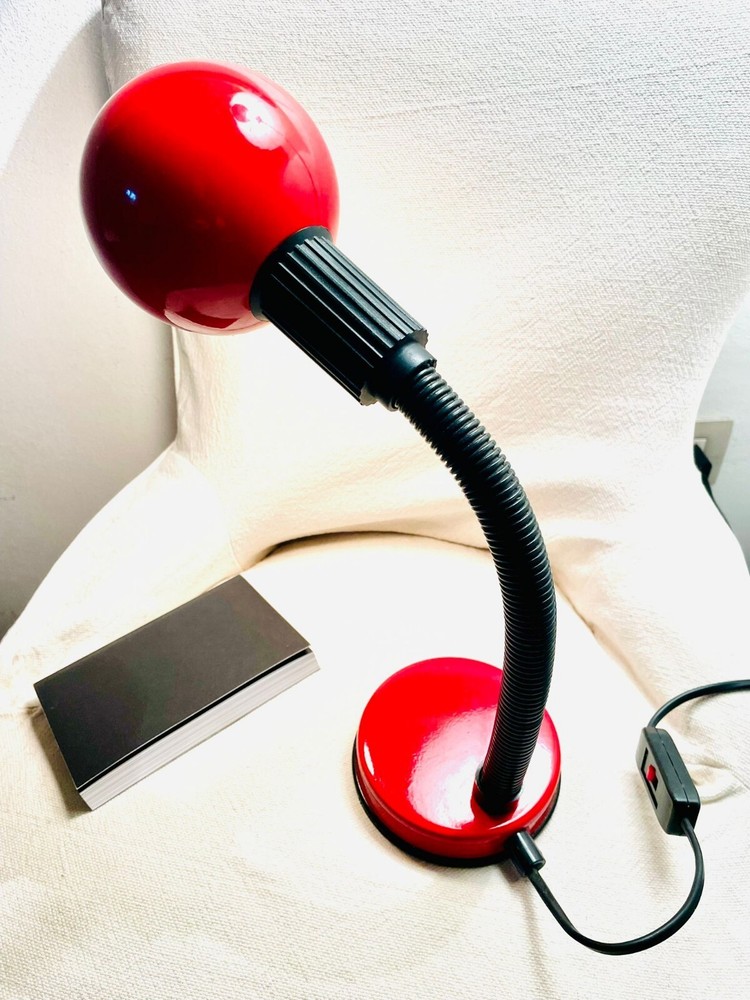 Lampada da tavolo modernariato. Lampada da tavolo, Iconico modello anni 80, perfettamente funzionante, ottimamente conservata e originale in ogni suo particolare. Regolabile a 360 gradi. Made in Italy. Colore rosso brillante, tipico dell'epoca. Fornita senza lampadina. Massima altezza 42 cm., diametro della base 11 cm..