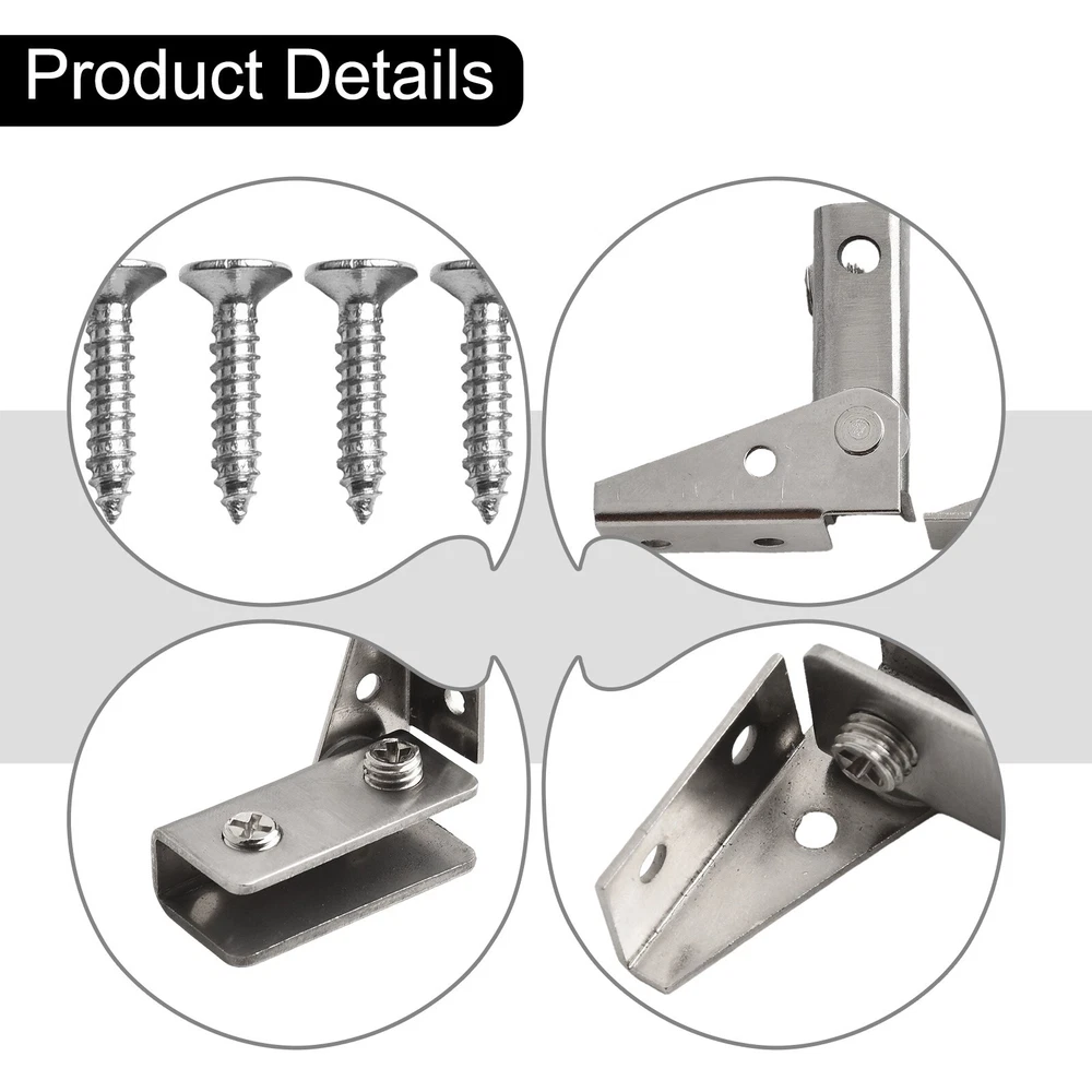 Sleek NonPorous Stainless Steel Hinges Two Pack Great for Various Applications DESCRIPTION Features: *Non-porous glass hinges: Made of high-quality stainless steel, these hinges are and reliable. *Smooth opening and closing: These hinges for ensure a seamless without any holes required in the glass. *Versatile application: Suitable for reinforcing and assembling glass in showcases, containers, fish tanks, etc. Can be used with glass glue. Adjustable screws make them suitable for most glass, ranging from 5-8mm thickness. *Secure installation: Install these hinges in your bathroom or kitchen to secure glass panels, glass shelves, and more. * construction: These hinges are made to last, providing a reliable solution for your glass door or cabinet needs. Specifications: *Product Name:Glass hinges *Material:Stainless steel *Size:43.5*40mm *Color:black,silver *Suitable glass thickn: about 5-8 mm Package Content: 2 x glass clips Note: . The real color of the item may be slightly different from the pictures shown on website caused by many factors such as brightness of your monitor and light brightness. 2. Please allow slight manual measurement deviation for the data. POLICES Shipping Payment WARRANTY We only ship to confirmed ebay Order addresses. Please comfirm that your Order address is in line with your shipping address. Please kindly note that the c ombined shipping is not provided because the shipping fee is calculated by weight. Also, the each additional item means exactly the the same color and size. It takes about 7 -15 working days to US; about 10-30 working days to other countries. Transit time may be a little delayed because of the bad weather and customs inspection . If you do not receive your item within 30 working days since payment finished, please contact us immediately for further assistance. Payment must be completed within 5 days. If you have any problems about payment, please contact us via ebay message. We strive for 100% customer satisfaction! Positive Feedback is very important to us. If you have any questions, p lease feel free to contact us via "Ask seller a question" . We will reply your email within 24 working hours.