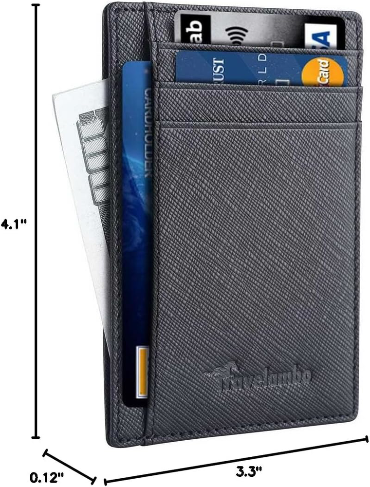 Fast Shipping Great Customer Support Satisfaction Guaranteed DESCRIPTION Shipping Shipping Shipping All domestic packages are shipped for Free (Unless other shipping method was selected during the checkout) Most items ship and arrive much sooner than the estimate delivery date. Usually within 2-3 days from payment. However, we have longer estimates to compensate for the occasional delay or supply chain breakdown. We do not accept P.O. BOXES - PLEASE PROVIDE A PHYSICAL ADDRESS Return Return Return In the event that you would like to return your purchase, we allow returns that are processed within the defined return date (the return date is to be found in the return policy/shipping and handling section) Please contact us for a return authorization and the return shipping address. Payment Payment Payment PayPal is our preferred method of payments it's the quickest, easiest and most secure way to pay for your goods or services online. PayPal offers buyer and seller protection should there be a problem. If you do not have a PayPal account, to get started and buy your first item with us is very easy. Simply click on the 'Buy It Now' button and follow the eBay checkout steps. Select PayPal as the payment method you then will be given the chance to enter your card details in to PayPal's secure checkout in order to pay for your order. Once the payment has been made, you will then be given the opportunity to make your own PayPal account to make paying for your items in the future very easy. Should there be a problem with payment please do let us know. Feedback Feedback Feedback Customer satisfaction is very important to us. If you have any problem with your order,please contact us and we will do our best to make you satisfied, please do not leave a negative feedback before we resolve your problem. We guarantee that your issue will be solved quickly. As long as you are happy with your purchase of , please leave us a positive feedback. Your feedback is very important to us it affects our search placement on eBay. We will leave a positive feedback for you in return automatically once we receive your feedback. Contact Us Contact Us Contact Us If you have any queries, please contact us via ebay. We usually respond within 24 hours on weekdays. Thank you for visiting our ebay store! RFID BLOCKING TESTED & APPROVED BY INDEPENDENT LAB TESTS: Our wallets have been tested for 13.56 MHz Frequency in which our credit cards, debit cards, driver license and ID cards operate. PLEASE BE NOTED THAT the signal of some ID badge, access cards and hotel room cards which operates in 142 KHz, can not be blocked by this wallet ENHANCES PERSONAL SECURITY: We leverage top RFID technology to block RFID signals used to electronically scan your wallet as someone passes by unnoticed. This keeps your vital information in driver license, debit cards and credit cards from being stolen Super Minimalist & Slim: Only 0.12" thick, sizing 3.3" x 4.1" x 0.12" extremely convenient to be carried around in your front or back pocket Functionality: Our rfid wallet not only offers security, it's also very functional. it features 6 card slots for you to place your most frequently used cards Hand Made: Handcrafted with care, our Travelambo wallet preserves leather's natural softness and shape, made by skilled artisans using traditional tools Slim RFID Blocking Leather Wallet for Men Front Pocket Minimalist Design Click here to see description Fast Shipping Great Customer Support Satisfaction Guaranteed DESCRIPTION Shipping All domestic packages are shipped for Free (Unless other shipping method was selected during the checkout) We ship within two business days of payment, usually sooner Standard FREE shipping takes between 3-5 business days Expedited shipping takes between 2-3 business days Overnight shipping takes between 1-2 business days We do not accept P.O. BOXES - PLEASE PROVIDE A PHYSICAL ADDRESS We Ship Globally using ebay's GSP, the item is sent to a logistic center in KY and shipped from there to the rest of the world. International customers are responsible for all duties and taxes Contact your local authority for questions related to the amount of duties or taxes you will be responsible for Return In the event that you would like to return your purchase, we allow returns that are processed within the defined return date (the return date is to be found in the return policy/shipping and handling section) Please contact us for a return authorization and the return shipping address. Please contact us for a Return Merchandise Authorization (RMA) number. We advise you to use a reputable carrier service when returning your goods. Please pack all returns appropriately. We ship globally Via eBay's global shipping program (GSP). Thus we don't cover returns for items shipped globally. Buyers returning such items will be refunded ONLY for the item's cost and not for the shipping. please check the Voltage information and make sure it matches the one in your country. In case it's not stated in the description, do ask us. Payment PayPal is our preferred method of payments it's the quickest, easiest and most secure way to pay for your goods or services online. PayPal offers buyer and seller protection should there be a problem. If you do not have a PayPal account, to get started and buy your first item with us is very easy. Simply click on the 'Buy It Now' button and follow the eBay checkout steps. Select PayPal as the payment method you then will be given the chance to enter your card details in to PayPal's secure checkout in order to pay for your order. Once the payment has been made, you will then be given the opportunity to make your own PayPal account to make paying for your items in the future very easy. Should there be a problem with payment please do let us know. Feedback Customer satisfaction is very important to us. If you have any problem with your order,please contact us and we will do our best to make you satisfied, please do not leave