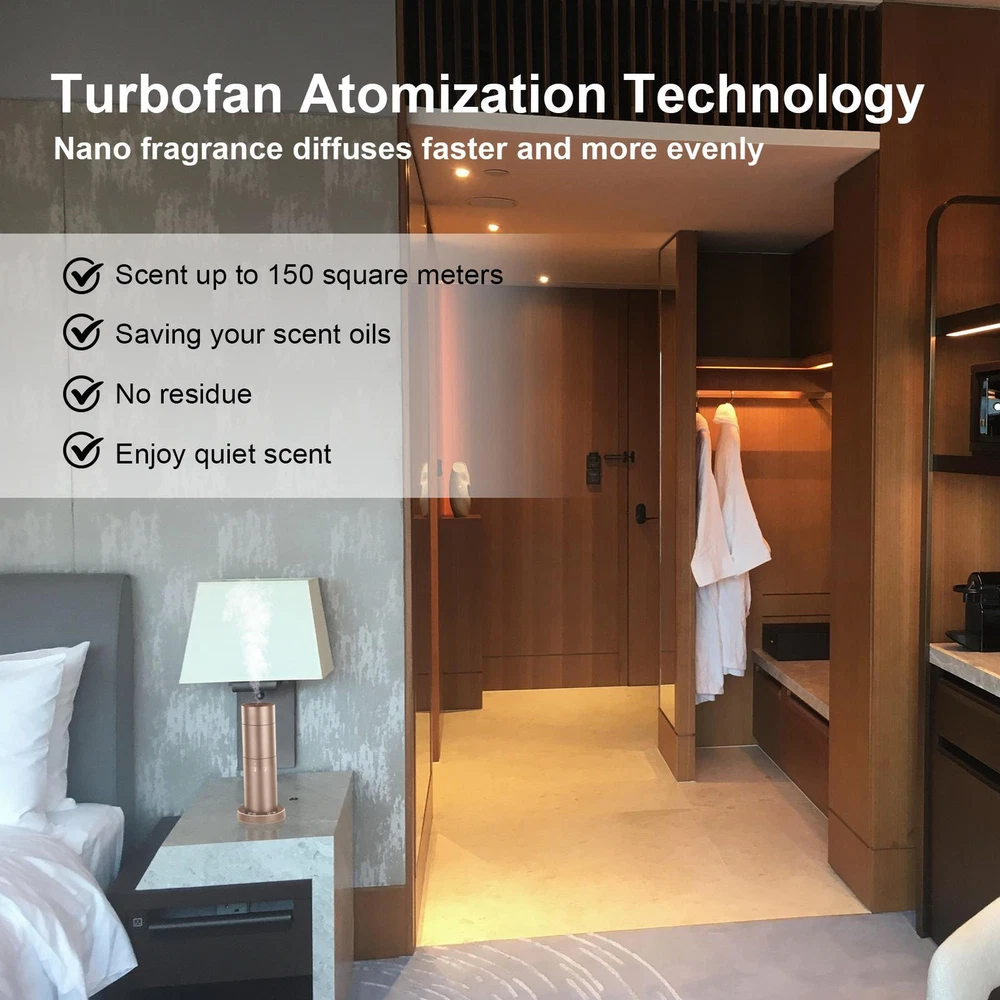 This waterless aroma diffuser is a game-changer! The smart remote control via WiFi makes adjusting scents effortless, perfect for home or office. The silent fan atomization spreads fragrance quickly and evenly—no water needed! Plus, the plug-in design makes refills a breeze. Love how sleek and high-tech it looks while filling my space with amazing scents. Highly recommend!