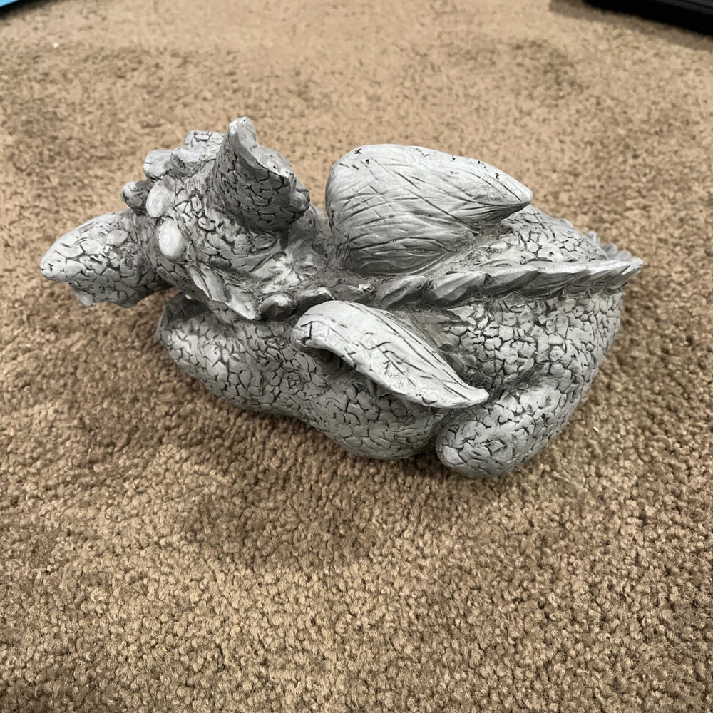 The Sleeping Baby Dragon Outdoor Statue is a medium-sized gray resin statue designed in the shape of a sleeping dragon, adding a touch of fantasy to any outdoor space like a porch, balcony, flower bed, or lawn. The modern-style statue features a textured finish and is suitable for both indoor and outdoor use, making it a versatile garden decoration. With easy care instructions, this mythical creature-themed statue brings a whimsical and enchanting element to your outdoor decor, perfect for dragon enthusiasts or those looking to add a unique touch to their living space.
