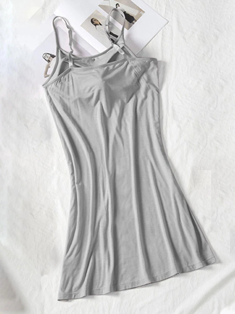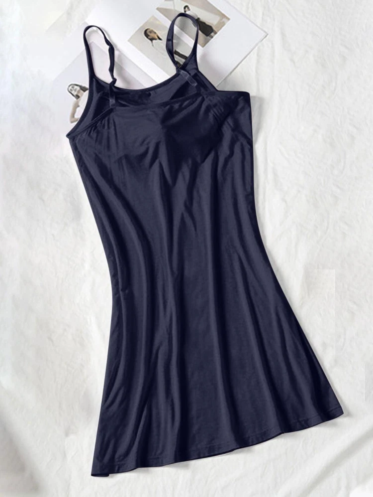 Sleeveless Round Neck Spaghetti Strap Cami Dress with Built-in Bra