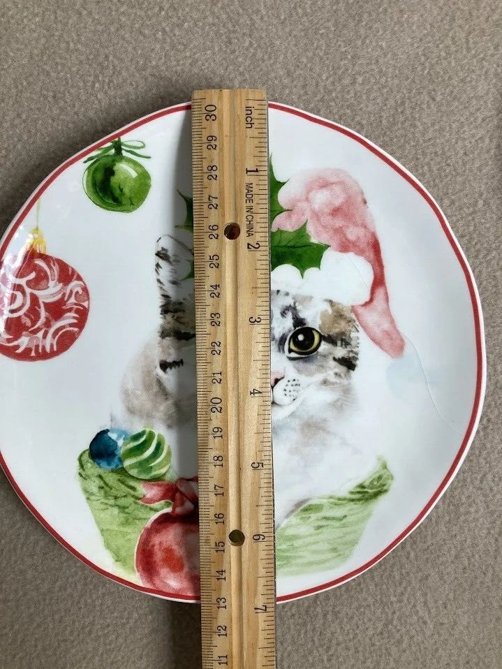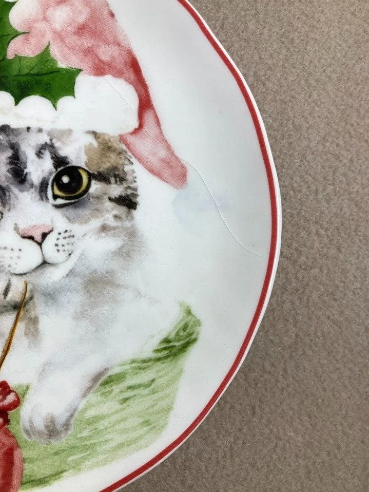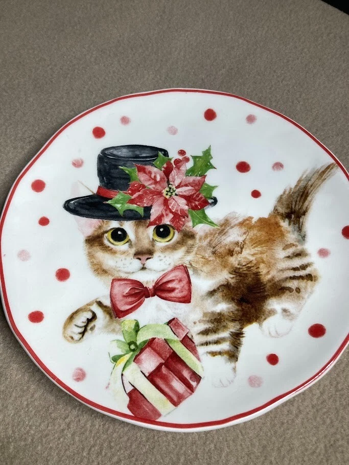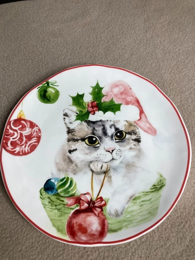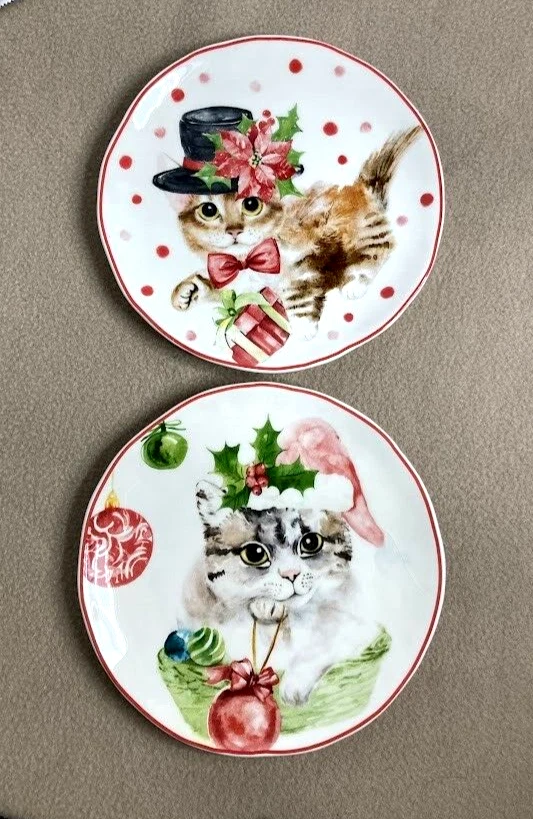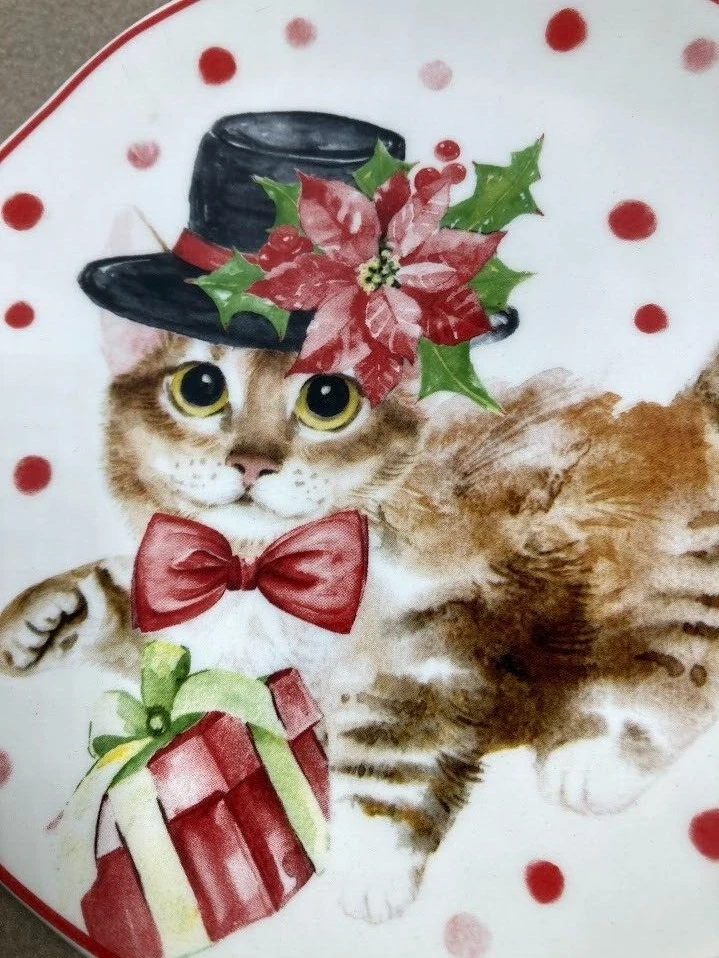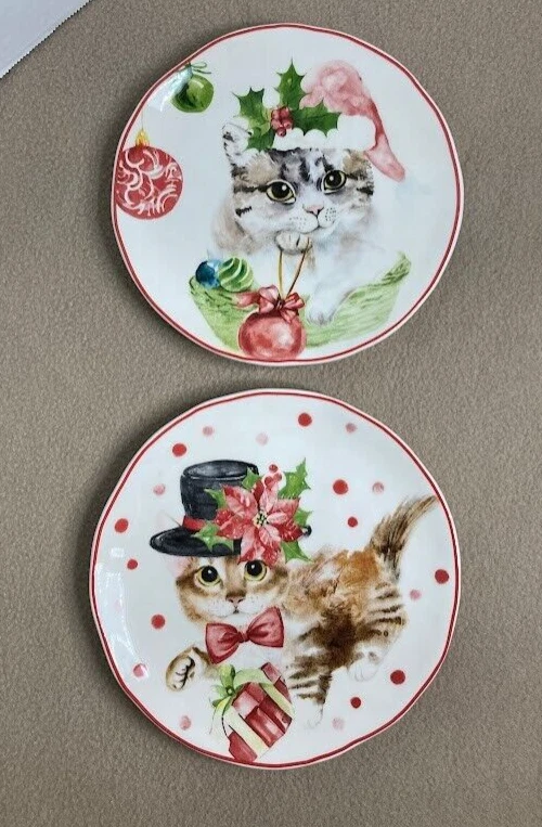 Theme: Christmas Cats/Kittens Brand: Sleigh Bell Bistro Character Family: Kittens Occasion: Christmas Material: Ceramic Item Length: 7 in Color: Multicolor Type: Plates Country/Region of Manufacture: China