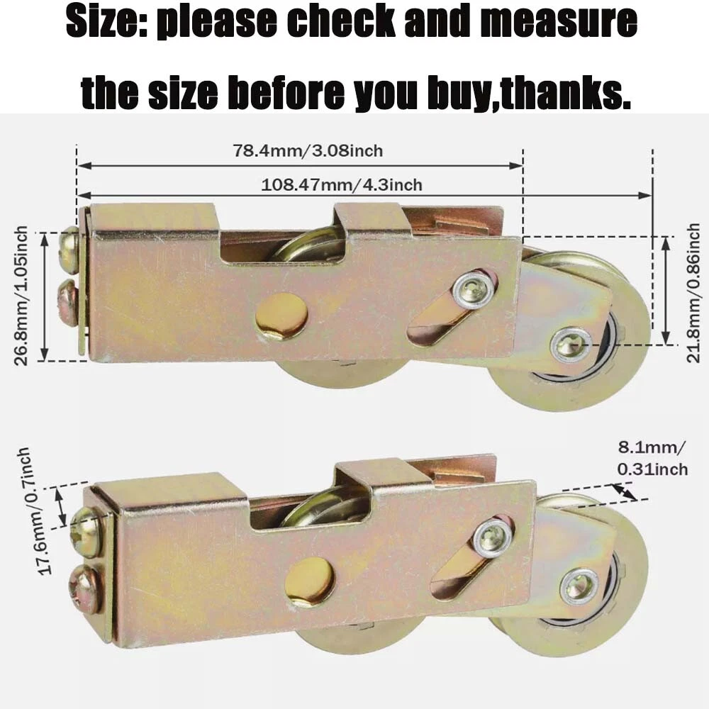 SAFE & SECURE SHOPPING 100% SATISFACTION GUARANTEED FAST SHIPPING Sliding Patio Door Tandem Roller Assembly 1-1/4In Steel Ball Wheel Bearing 2x US Product Description If there are any problems after you purchased, please feel free to message us firstly, we will definitely give you a satisfying solution. Please don't leave neutral or negative feedback or open a return request without any communication. Features: 2pcs sliding glass door rollers for sliding glass doors, screen doors, sliding doors, windows, vinyl patio doors, wardrobes Made of high-quality radial ball bearings. 2pcs rollers can withstand 330 lbs and can work after 100,000 cycles. Just remove the broken roller assembly from door or window, then install a new one.Quick Installation. *Before you order: You have to measure the size of your old rollers, length, width, height and type of mount of the assembly, to make sure it matches as closely as possible. Specification: Material: high-quality bearing steel Size: 1-1/4 inches [Size Details] The sliding patio door roller includes standard size of 5/16inch wheel thickness (width) x 1-1/4inch diameter. It has sturdy and enduring structure . Color: as pictures shown Package included: 2×Sliding rollers Note: Not Include installation manual and installation tools How to Replace Rollers For reference only, professional installation is required. Please pay attention to safety and do not get injured Unscrew and remove the side stile of sliding panel. Gently knock a block of wedge against the bottom frame with a rubber mallet. Use a putty knife to pry in rail gap, then remove the old roller. Replace with our new roller and align F-Tab hole with the screw holes. Tap the side stile back into sliding panel and secure it tight with screws. Repeat step 1-5 on other side to replace another roller. Adjust rollers so door sits squarely in frame. Shipping Returns Payment Contact US Shipping How long does it take to ship out of the USA warehouse? Orders ship out within 24-48 business hours on average. Normally same day if before 1PM EST. How long does delivery to my address take? Delivery is determined by the type of shipping you go with. Normally, all orders from US warehouse are delivered within 3-7 business days. Many things can play a factor such as Location, Weather, and the items in the order. Hope you can understand it,If you have any questions, please email us , we will help,thanks. International package usually takes about 7-20 days to reach you. We only ship to confirmed Ebay addresses. Your Ebay address MUST MATCH your Shipping address. Returns ▲▲▲ Please contact us first before you sent a return request ▲▲▲ Any problems you meet, we will help to solve it,We will ensure that customers do not suffer losses, please don't worry.Trust us!!! 1) No NEED TO RETURN . If you received an incorrect, damaged, defective, or item not as described, Just Contact us directly by ebay messages,send us the photos, videos, we will give you the partial or full refund or replacement on our cost. 2) If you sent a return request ,please selete the reason for return: Changed my mind/Just didn't like it/Order by mistake .Thanks for your cooperation. Return products must also be in its original condition: including box, packaging and all other accessories. Please email us your return tracking number too,thanks. Payment We accept PayPal, MasterCard, Visa, American Express, Discover and etc payment. Immediate payment needs to be processed for items with Add to Cart option so that any promotional discounts can be applied to your order immediately. Please Note:The buyer is responsible for any applicable import duties and local taxes. Contact US Our Working Time: (GMT+8)Monday to Friday,9:00am-18:00pm. For inquires and customer support, please send your emails via ebay email system. All emails will be responded to within 24 hours during working days. Weekends Time will be responded to within 24-48 hours . Please be patient and give us some time, we will solve your problem ASAP. You can also send photos or videos for us to quickly answer your questions. Thank you very much,and thanks for your understanding. We appreciate your business and strived to improve our customer service and our commitment to quality. We will leave a 5-star positive feedback immediately after payment is received. We appreciate a 5-star positive feedback as much as you do.It is very important for us. Please DO NOT give us a neutral or negative review. We are a growing small store and we will do our best to improve every thing. Please give us a chance. Really!!! Appreciated!! NEED YOUR SUPPORT!!! Copyright © 2022 Tongtool