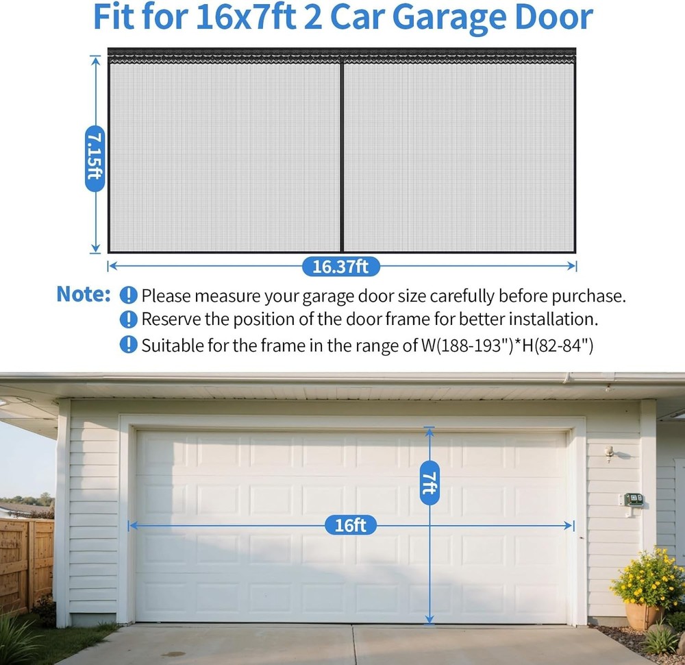 Sliding Garage Door Screen Fiberglass Mesh 16x7 Ft Magnetic Track Bug Protection ‹ › ‹ › ‹ › ‹ › ‹ › ‹ › ‹ › ‹ › ‹ › Sliding Garage Door Screen - Fiberglass Mesh 16x7 Ft - Magnetic Track Bug Protection Product Features: Smooth Sliding Curtain Track: Enjoy effortless horizontal movement with our top-mounted sliding track, allowing complete access to your garage. Enhanced Adhesive Durability: Innovative sliding mechanism distributes weight evenly, preventing adhesive detachment and ensuring a long-lasting performance. Adjustable Width for Perfect Fit: Designed with a 1-2cm extra width allowance to ensure proper coverage and eliminate installation errors. High-Quality Fiberglass Mesh Construction: Crafted from fiberglass, providing enhanced durability and effective insect protection while maintaining excellent airflow. Easy Installation and Maintenance: Comes with all necessary hardware and detailed instructions for quick setup. Easy to clean for hassle-free maintenance. Benefits: Effortless access to your garage without hindrance. Durable and resilient against wear and tear. Prevents common installation issues with adjustable features. Insect protection while enhancing garage ventilation. Simple installation process that anyone can achieve. Why Choose Our Sliding Garage Door Screen? Say goodbye to annoying bugs and welcome fresh air with our Sliding Garage Door Screen. The superior fiberglass material combined with an innovative sliding mechanism ensures durability and ease of use, making garage access a breeze. Its adjustable width guarantees a perfect fit for a sleek look without leaving gaps. Perfect for busy garages or multi-use spaces, this door screen is more than just a bug deterrent; it’s a functional addition to your home. Experience the effortless convenience it brings - order your Sliding Garage Door Screen today and transform your garage experience! Shipping Free & Fast Shipping - We offer free shipping to most of the USA with a normal delivery time of 3-7 days. However, due to the current situation, additional delivery time (up to 3 weeks) may be required for some items. Alternative Carriers - We may use alternative carriers (e.g. USPS, FedEx, UPS, etc.) to ensure your package arrives safely and on time. Due to the use of multiple carriers, we are unable to provide a tracking number automatically. Handling Time - Orders are processed and shipped within 1-2 business days of receiving cleared payment. Shipping Restrictions - Shipping to Alaska, Hawaii, Puerto Rico, Guam, and other US territories may incur shipping charges or delivery restrictions. Please contact us before ordering, or your order can be refunded/cancelled. State Restrictions - There may be restrictions based on your state of purchase. For example, certain items may not be shipped to California due to state regulations. Contact for Tracking Updates - If you require tracking updates or have any concerns about the delivery of your order, please feel free to contact us, and we will be happy to assist you. Return 30-Day Hassle-Free Returns - We want you to be completely satisfied with your purchase. If you are not, you can return the item within 30 days of receiving it for a full refund or exchange. Easy Return Process - To start a return, simply contact us and we will provide you with a prepaid return shipping label and detailed instructions. Restocking Fee - There are no restocking fees for returns. However, the buyer is responsible for return shipping costs if the return is not due to a seller's error. Refund Processing Time - Refunds will be processed within 5 business days of receiving the returned item in its condition. Payment We accept all major credit cards, PayPal, and Apple Pay for your convenience. Your payment information is secure and encrypted to ensure a safe and seamless transaction. Please complete your payment within 3 days of purchase to avoid any delays in shipping. Feedback Your feedback is extremely important to us. We strive to provide the best products and customer service possible. If you are satisfied with your purchase, please take a moment to leave us a positive review. If you have any concerns or issues with your order, please contact us before leaving negative feedback. We are committed to resolving any problems and ensuring your satisfaction. Contact Us If you have any questions or concerns, please feel free to out to our customer support team. You can contact us through the eBay messaging system. We are available Monday to Friday, 9:00 am to 5:00 pm EST, and we will do our best to respond to your inquiry within 24 hours. Buy it now and enjoy a pleasant shopping experience! Unit Quantity: 1.0 count Suitable For: Garage Door,2-Car Garage Openings,Standard Garage Openings Material: Fiberglass Features: Easy To Install,Smooth Sliding Curtain Track,Enhanced Adhesive Durability,High-Quality Fiberglass Mesh Construction Color: Black Item Height: 218 Centimeters Item Length: 7 ft Type: Garage Door Screen Number in Pack: 1 Item Depth: 1 in Item Thickness: 0.1 in Item Weight: 9.5 lb Unit Type: lb