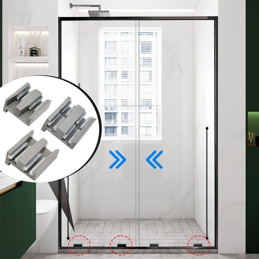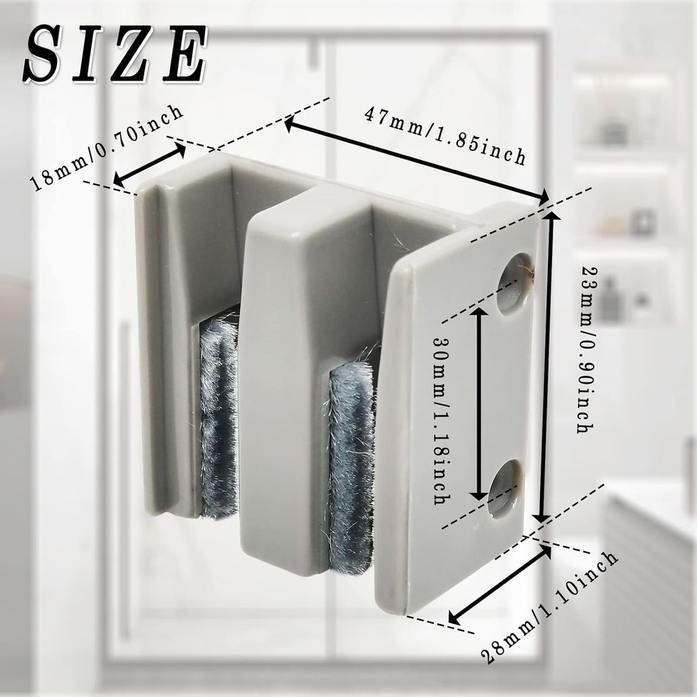 Sliding Shower Door Bottom Guide Assembly with Grey Fluff,8Mm(1/3Inch),Plastic Package Included:3pcs Shower Room Double Track Bottom Guides With Matching Screws. Material:Plastic, Sturdy Construction, Can Be Used For a Long Time. Size:Length:51mm/2.00inch,Width:47mm/1.85inch,Height:28mm/1.10inch、18mm/0.70inch. Applicable Glass Thickness:8mm(1/3inch). Function:Helps Keep Sliding Door Panels Centered On Their Respective Tracks.