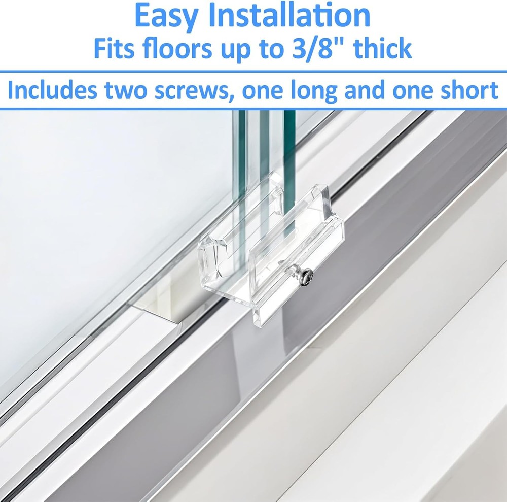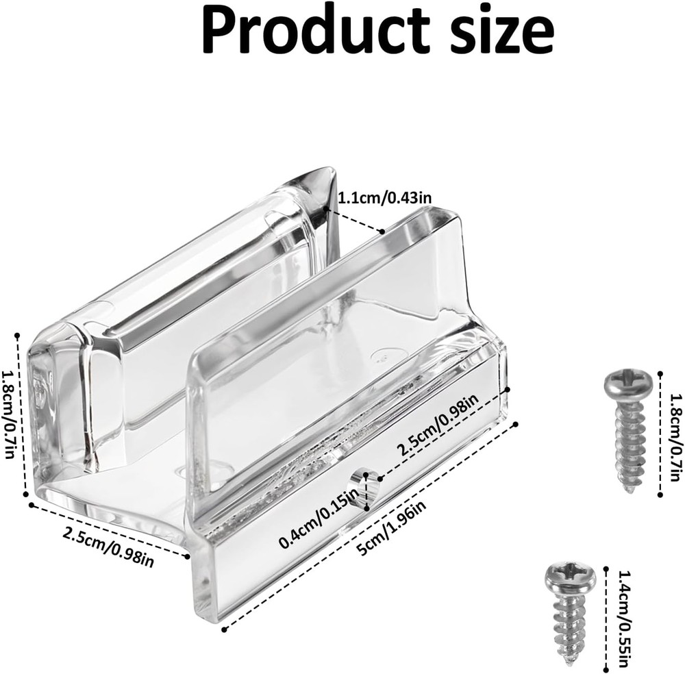 About this item Sliding Door Guide: The shower door guide ensures your sliding shower door stays properly aligned, making installation a breeze. This shower door bottom guide is designed to fit the 3/8 inch channel of glass shower doors, providing a smooth and secure sliding experience. Sturdy Material: The shower door parts bottom guide is made of durable clear acrylic material to ensure longevity and reliability. Easy to Use: This sliding door bottom guide is a good replacement for your existing sliding door shower door guide. It is easy to install and enhances the sliding performance of both shower doors. Two screws are included in the package, allowing you to choose what best suits your needs. Size: 0.71 x 2 x 0.98 inches. It is suitable for glass up to 3/8 inch thick, which is a good fit for most sliding shower doors and does not take up too much space. Dimensions: 0.71 x 2 x 0.98 inches.