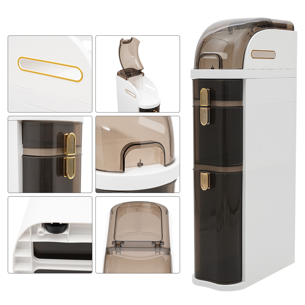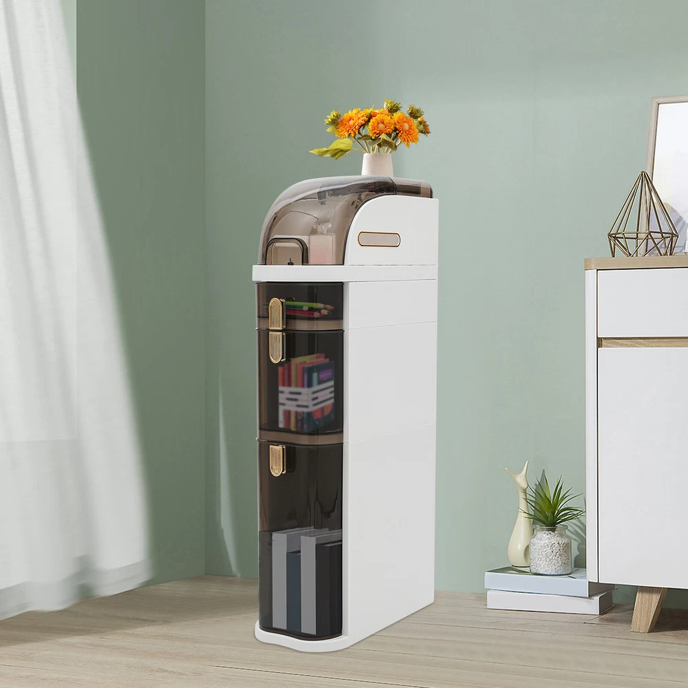 Specifications Material: PP, PET Surface Treatment: Brightening Process Color: White, Clear Brown Style: Modern Shape: Rectangular Mount Type: Free Standing Number of Drawers: 3 Assembly Required: No Third-tier Drawer Height: 34.5cm/13.6in First and Second-tier Drawer Height: 29cm/11.4in Product Size: 41*18*78cm/ 16.1*7*30.7in Package Included 1* Storage Cabinet 4* Wheels Narrow Slim Storage Cabinet 3-tier Drawers Bathroom Floor Standing Organizer Description With a large capacity of 3-tier drawers and a top hidden space design, the slim and tall storage cabinet adds organization and storage to your small bathroom space, making your bathroom or kitchen more neat with clutter well organized. It is made of high-quality PP and PET and has four removable wheels, which is ideal for narrow dressing rooms or bathrooms with insufficient storage space. Key Features Build to Last: The product is mainly made of PP and PET and after the surface brightening process, which is odorless, non-toxic, chemical resistant, fatigue resistant, and friction resistant . Large Storage Capacity: The storage cabinet measuring 16.1*7*30.7 inches has three-tier drawers and a hidden space at the top, so you can easily categorize toys, clothes, books, drinks, toiletries, tissues, towels, etc. Space-saving: Its compact design(footprint: 16.1*7 inches) allows the cabinet to provide maximum capacity in minimum space and effortlessly slide into seemingly useless tight spaces next to the toilet or closet. Whether you use it in your living room or bathroom, it delivers full use of space. Thoughtful Design: The hidden space at the top is designed with a large flap, so you can open and close it at a wide angle for hassle-free access. Also, the top is equipped with flat round holes on both sides, through them, you can draw and take toilet paper more conveniently. High Load-Bearing Capacity: The sturdy rectangular structure and high-quality materials allow it to withstand a heavy load without collapsing, you can use it with peace of mind. Semi-transparent Design: The drawer and top lid are designed semi-transparent, you can clearly glance at the items stored inside, easy to access and store your things. Easy to Move : Equipped with four removable wheels, you can easily move and secure the storage cabinet anywhere, making it ideal for the kitchen, bathroom, office, or any narrow space that needs to be efficiently organized. Beautiful Appearance: The product with a two-color sleek and stylish look adds a touch of elegance to your kitchen or bathroom décor and enhances the overall ambiance of your bathroom. Ready to Use: All parts of this storage cabinet are already assembled, so you don't need to struggle to install it. You can use it immediately as soon as you receive it. Protective Package: To prevent the product from being damaged during transportation, we packed it with the anti-collision sponge to protect your products to the maximum extent possible. Guaranteed Customer Service: We stand behind all our guests and look forward to assisting you with your purchase. It is our pleasure to answer your confusion and questions. The end of the story between us is not "we sell and you buy". Details Rounded Corners and Edges: The corners are rounded and smooth to reduce collisions and improve safety. Comfortable U-shaped Pulls: They make drawer opening and closing even smoother. Raised Bottom Drawer: The raised bottom drawer (13.6inch) can accommodate more bulky household items such as laundry detergent and cleaning tools. Application This versatile storage cabinet can be used in a multitude of settings. Whether you need additional storage in your kitchen, bathroom, bedroom, garage, or even retail space, our wheeled cabinet is up to the task. Specifications Material: PP, PET Surface Treatment: Brightening Process Color: White, Clear Brown Style: Modern Shape: Rectangular Mount Type: Free Standing Number of Drawers: 3 Assembly Required: No Third-tier Drawer Height: 34.5cm/13.6in First and Second-tier Drawer Height: 29cm/11.4in Product Size: 41*18*78cm/ 16.1*7*30.7in Package Included 1* Storage Cabinet 4* Wheels Notes Please allow the slight color difference caused by the shooting light and 1-3cm error due to manual measurement, and make sure you do not mind before you order. Payment Delivery details Terms of sales About us Contact us Payment We accept ebay payment 。 Fees such as import duties, taxes are not included in the item price or shipping costs. These charges are the buyer's responsibility. Delivery details Shipping: 2-9 working days to: USA Terms of sales We maintain high standards of excellence and strive for hundred percent customer satisfaction. Feedback is very important to us. We hope that you contact us immediately before you give neutral or negative feedback, so that we can address your concerns. It is impossible to address issues if we do not know about them! About us Your satis faction is our ultimate goal. We work hard to earn your trust and future business. Our certified technicians have tested each item before shipping. The unit comes with 1 year limited warranty on all manufacturing defects. a) If you receive a defective item, you may return it or ask for a discount. Please contact us within 14 days after you receive the package. b) What you returned must be intact and in its original packaging as re? u. Customer is responsible for shipping costs of the returned item. c) We will cover the cost of shipping back t with the shipping rate indicated in the registration page. We will send you a new unit or refund the full payment you paid. Thank you. Contact us Business Hour Business Hour: Monday To Friday: 8:30 AM to 5:00 PM (Beijing China time) Due to time zones, our reply to your questions may not be immediately. But within above working time, we will reply your email within 24 hours. If it's non-workdays, please kindly be patient and wait till Monday. Please contact us with ebay message. Please feel free to contact 