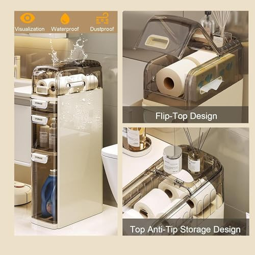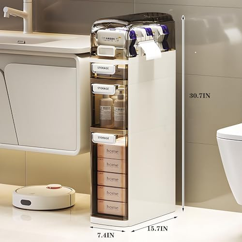 Slim Bathroom Storage Cabinet,Waterproof Plastic Bathroom Storage
