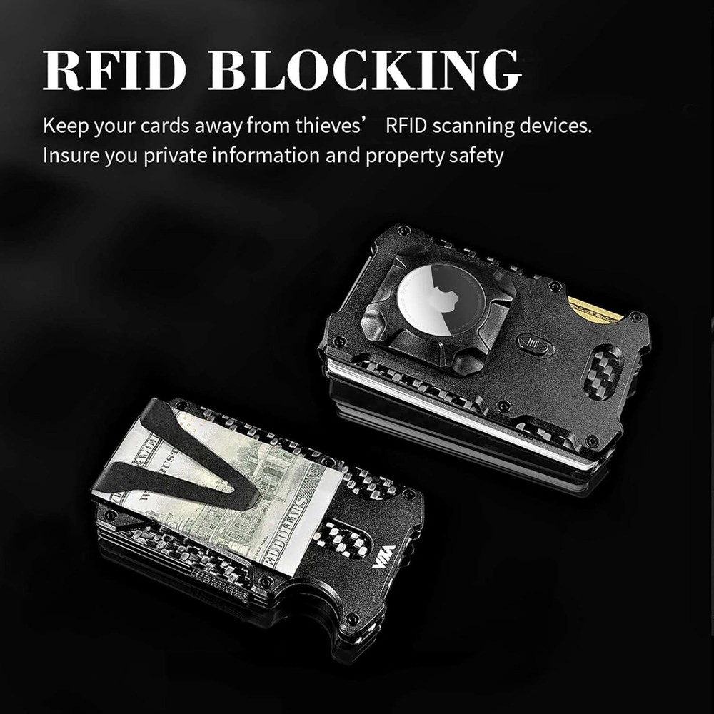 WXM Wallet for Men with AirTag Holder Credit slim Front Airtag Black Product Details Product Dimensions: 4.4 x 2.16 x 3.84 inches Item Weight: 4.2 ounces Department: Womensunisex Manufacturer: WXM Item model number: Airtag Wallet Brand: WXM Color: Airtag Wallet Black Compatible Devices: airtag Form Factor: Cover Shell Type: Hard [Airtag Wallet]: This Mens Wallet is designed to accommodate an Airtag, allowing you to locate it with your iPhone via the Find My app. (Please note: Airtag is NOT included). [Spacious & Accessible]: Securely holds up to 15 credit/debit cards. The external notch ensures easy card retrieval. [Advanced RFID Protection]: Our Wallet for Men boasts a robust metal body, shielding your cards from potent RFID Chip Readers. [Durable & Lightweight]: Crafted with military-grade Real carbon fiber and framed in Aluminum alloy, the WXM Tactical Wallet is not only lightweight but also resilient, outperforming traditional leather wallets. [Universal Appeal]: Both men and women admire its sleek design and metal construction. Perfect as a gift for the avid travelers in your life!
