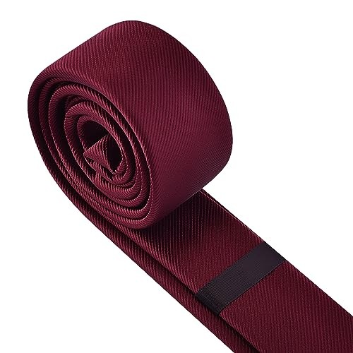 Black Slim Skinny Tie 2.35 Inch 6CM Solid Burgundy Formal Necktie