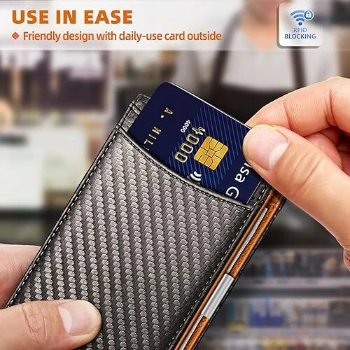 Return Policy Fast Delivery Trusted seller Mens Wallet, Slim Front Pocket Wallet Genuine Leather for Gift Men 11 Cards RFID Blocking Product Description BIG CAPACITY--11 card slots,inside money clip for bills and 1 ID windows,smart layout with front side functinos for daily using cards,and inner side functions for other bulk cards,right for heavy card users; Slim Wallet--Compact wallet with size of 3"X4.3,easily fitting in front or any other pocket,not bulky as other leather wallet with this same capacity; EASY ACCESS--Refined layout but easy access for every card,Finger pushing ID slot and inside money clip keeping the bills safe; RFID BLOCKING--Full RFID blocking by the metal-composited technology,with this wallet, you are free to go and shop anys; GIFT IDEA--Need to have a gift for a man? what else can better? A wallet with customized meaning for him? It is already packed in an elegant gift box for you,just a to buy and then present,so simple done. Shipping Returns Payment Shipping Shipping is FREE to all addresses other than APO/PO boxes in the lower 48 states. All our stock ships from US-based warehouses. Shipped via USPS or UPS (depending on location and package weight) Unless stated otherwise, all orders will ship within 24-72 hours of your payment being processed. Check our feedback to see the great reviews of FAST shipping we offer. Returns Seller does not accept returns Payment We currently accept payment via eBay managed payments only. Once payment is cleared, we will dispatch your shipment within 1-3 business days. Please refer to the "Shipping" tab for more information regarding shipping speed to your destination.