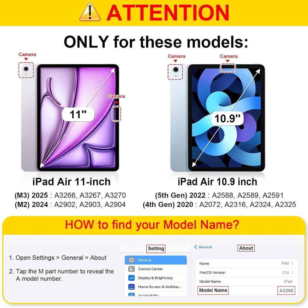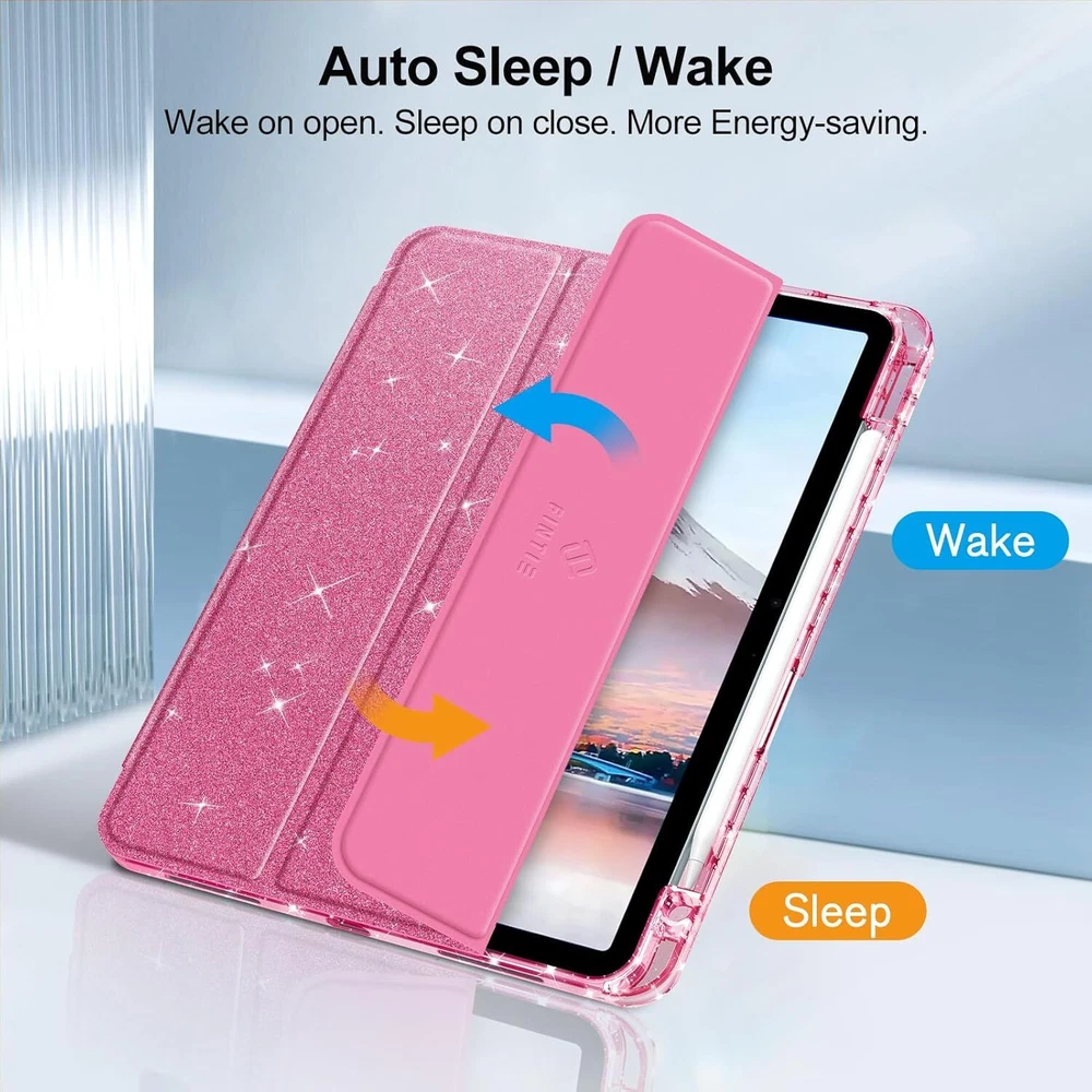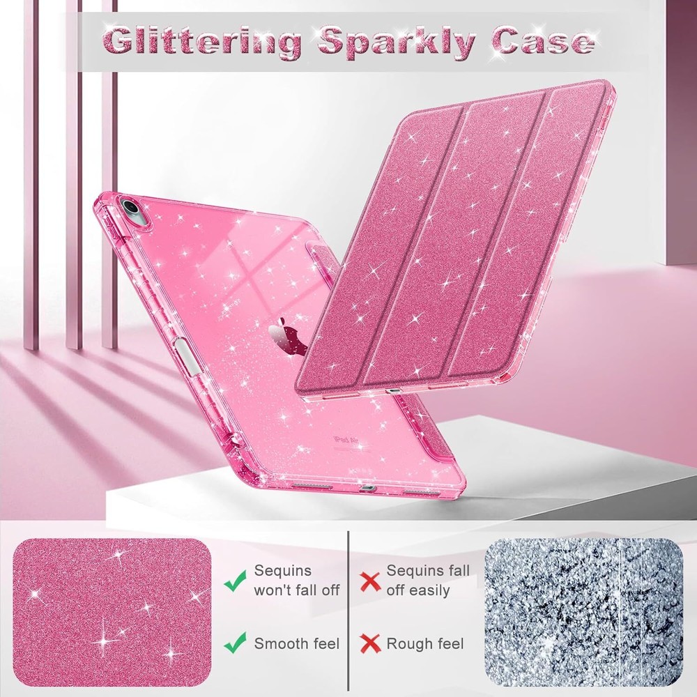888 Other Apple Accessories Samsung Accessories Microsoft Surface Accessories Nintendo Switch Accessories Onn Accessories New Arrival TV Remote Accessories Passport & Card Holder Bose Accessories Keyboard Fujifilm Slim Case for iPad Air 11-inch M3 2025 2024/iPad Air 5th 4th Shiny Clear Cover Exclusively designed for iPad Air 11-inch (M3) 2025 (Model: A3266 / A3267 / A3270), iPad Air 11-inch (M2) 2024 (Model: A2902 / A2903 / A2904), iPad Air 5th Generation 10.9 Inch 2022 (Model: A2588 / A2589 / A2591), iPad Air 4th Generation 10.9 Inch 2020 (Model: A2072 / A2316 / A2324 / A2325). Not compatible with any other devices. Elevate your iPad's beauty with a stunning combination of glittering sparkly PU leather cover and a bling crystal-clear shiny back. Perfect for fashion-forward individuals, stylish women, cute kids, and anyone looking to showcase their unique style. Hardshell back cover with flexible TPU bumper protects your iPad from shocks, drops and impacts. Soft microfiber interior front prevents scratches, while the smooth PU leather resists dust and is easy to clean. Featuring embedded crystal glitter that never fades, ensuring your iPad always shines brightly. Seamlessly supports Apple Pencil Pro / Apple Pencil 2nd Gen magnetic and wireless charging when case is on. Built-in pencil holder securely carries and protects your apple pencil wherever you go. (Case only, other accessories not included!). Cover contains flip capability to transform the case into a viewing stand and keyboard stand with ease. With built-in magnets, automatically wakes or puts your device to sleep when the lid is opened and closed. Payment Delivery details Return Policy Contact us Feedback Payment Only PayPal Payments are accepted at this time; however, you may utilize the tools within PayPal to pay via your credit card. We reserve the right to file an unpaid bidder alert if the payment is not received within 7 days after the auction ended. PayPal transactions are free for buyers. Please let us know before you open a case if PayPal charges you extra fees upon purchase. Delivery details Paid items will be shipped within 1-2 business days. For US buyers, we will ship via USPS First Class mail which will take 2-5 business days for delivery. For other countries, we will ship via FedEx which will take 3-5 weeks for delivery. Shipping details will be sent to buyer through email on the same day that the item is shipped. Your item will usually arrive within the estimated timeframe. However, please note that there are certain circumstances that we unfortunately do not have control (i.e. weather condition, delay by postal office, etc.). Return Policy Contact us within 30 days of receiving the item. No questions asked - all returns accepted. Refund given as an exchange or money back. Return shipping should be paid by the buyer and $3 restocking fee might be charged per item returned. Contact us If you have any questions or concerns please feel free to call, message or email us. Our staff is happy to assist you in any way possible. Our office is open Monday-Friday 9am-5pm EST. CA residents: see the California Proposition 65 WARNING WARNING : Cancer and Reproductive Harm - www.P65Warnings.ca.gov Feedback Customer satisfaction is important to us and our feedback rating reflects this satisfaction. We strive to be as close as possible to 100% perfect "Five-Star." If anything did not meet your expectations, please provide us with the opportunity to fix our issues before you leave feedback. If satisfied with the purchase and our service, please take a minute to give us positive feedback and leave us 5 star feedback just as: Item as described Communication Shipping time Shipping and handing charges
