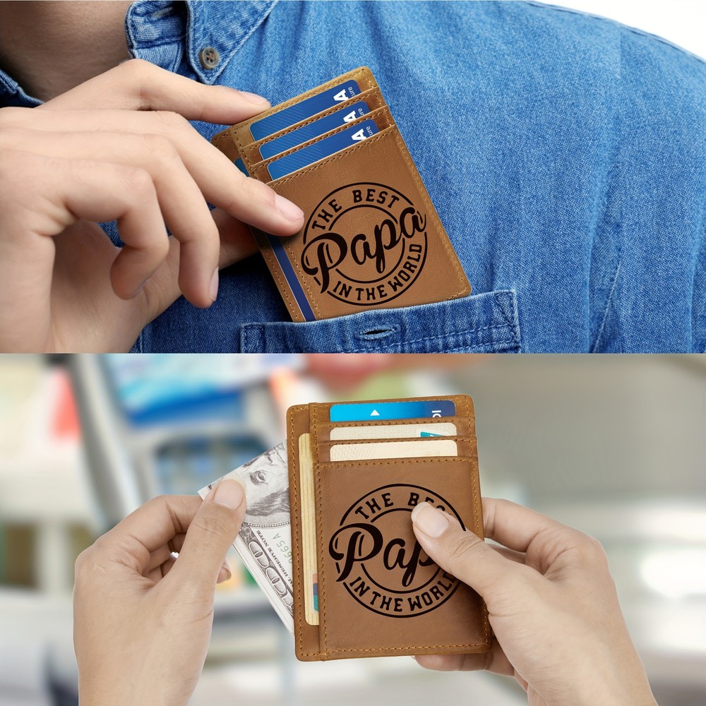 1. This wallet is amazing—super sleek yet holds all my cards and cash with ease. The top-grain leather feels premium and ages beautifully. Love the engraved initials and dark brown color—classy and professional. Perfect for everyday use without bulging in my pocket. Highly recommend!