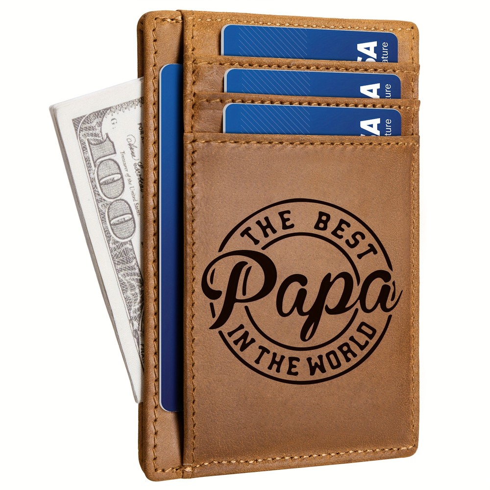 Slim Durable Top-Grain Leather Mens Wallet with Multiple Slots and Engraved Th Logo