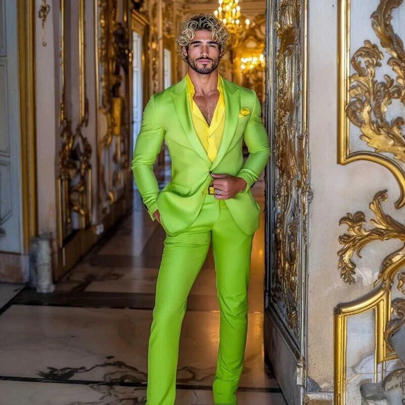 Slim Fit Green Mens Wedding Suit 2-Piece Formal Jacket & Pants