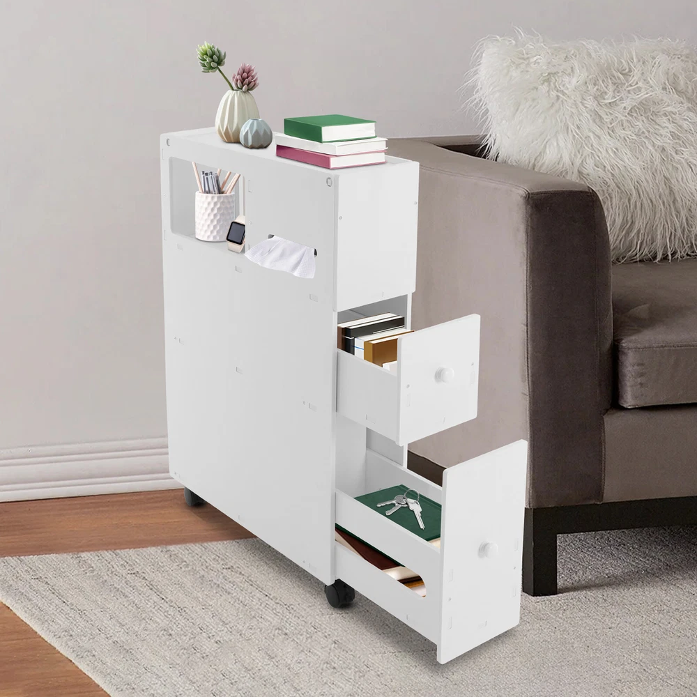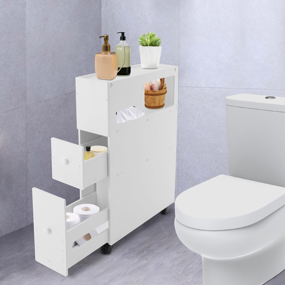 Slim White Floor Standing Bathroom Storage Cabinet Narrow Toilet Shelf Cupboard