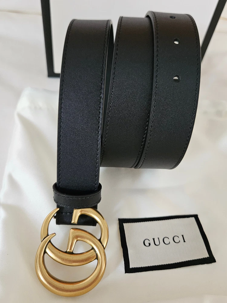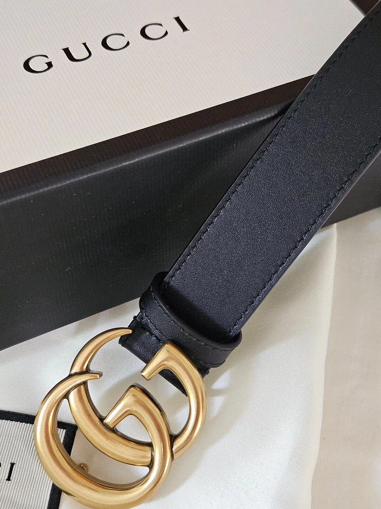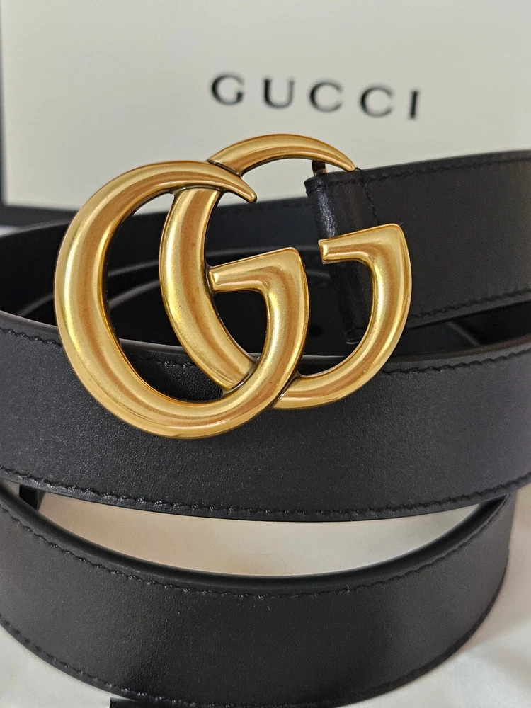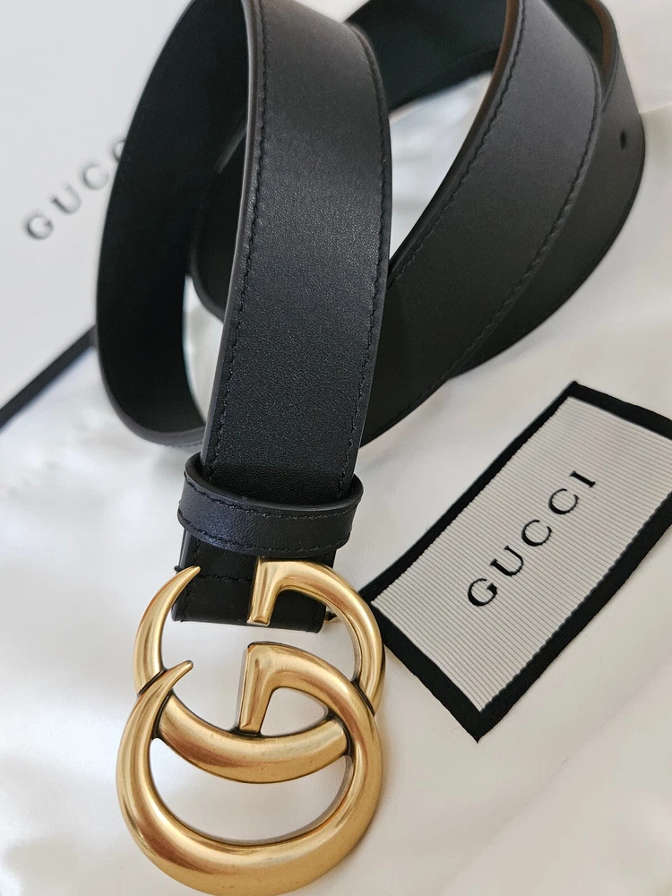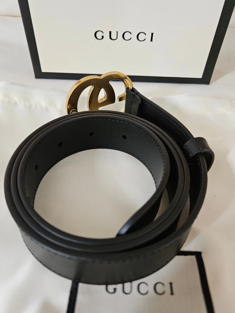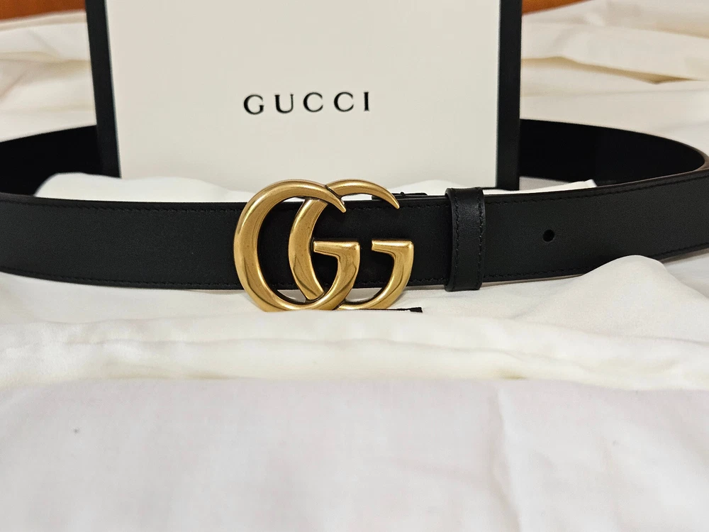 Womens Gucci Skinny Marmont Belt 1" Version Gold GG Buckle Comes with Dust Bag & Box as Shown 100% Authentic Size 80cm 26-28 Waist or 2-4 dress size please check your size Will Ship as Soon as Purchased Arrives in 3 Days Time