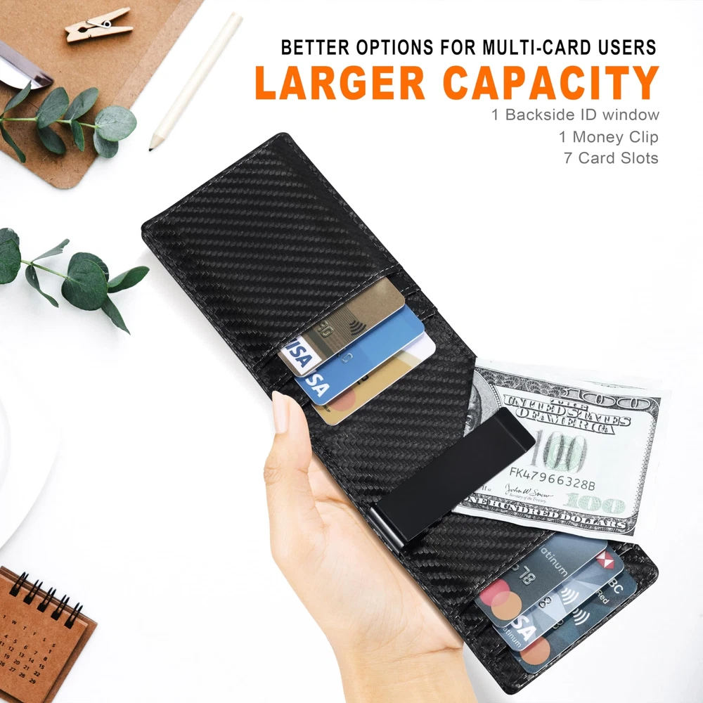 Gostwo Slim Wallet for Men Minimalist Wallet Leather ID Window Card Case with Mo Features: Ultra Slim: The slim wallet for men at 3.9"x2.76"x0.34" fits essentials without bulk RFID Blocking: Our RFID wallet for men has been independently tested and verified to block the 13.56 MHz frequency, ensuring complete RFID protection for your sensitive information Plenty of Room: 6 card slots, 1 quick-access front pocket, 1 ID window, and 1 money clip for everyday essentials Gift for Men: The perfect gift for dad, grandpa, friends, brothers, boyfriends, or husbands on birthdays, anniversaries, Christmas, Father's Day, New Year and other occasions Features: Ultra Slim: The slim wallet for men at 3.9"x2.76"x0.34" fits essentials without bulk RFID Blocking: Our RFID wallet for men has been independently tested and verified to block the 13.56 MHz frequency, ensuring complete RFID protection for your sensitive information Plenty of Room: 6 card slots, 1 quick-access front pocket, 1 ID window, and 1 money clip for everyday essentials Gift for Men: The perfect gift for dad, grandpa, friends, brothers, boyfriends, or husbands on birthdays, anniversaries, Christmas, Father's Day, New Year and other occasions eBay integration by